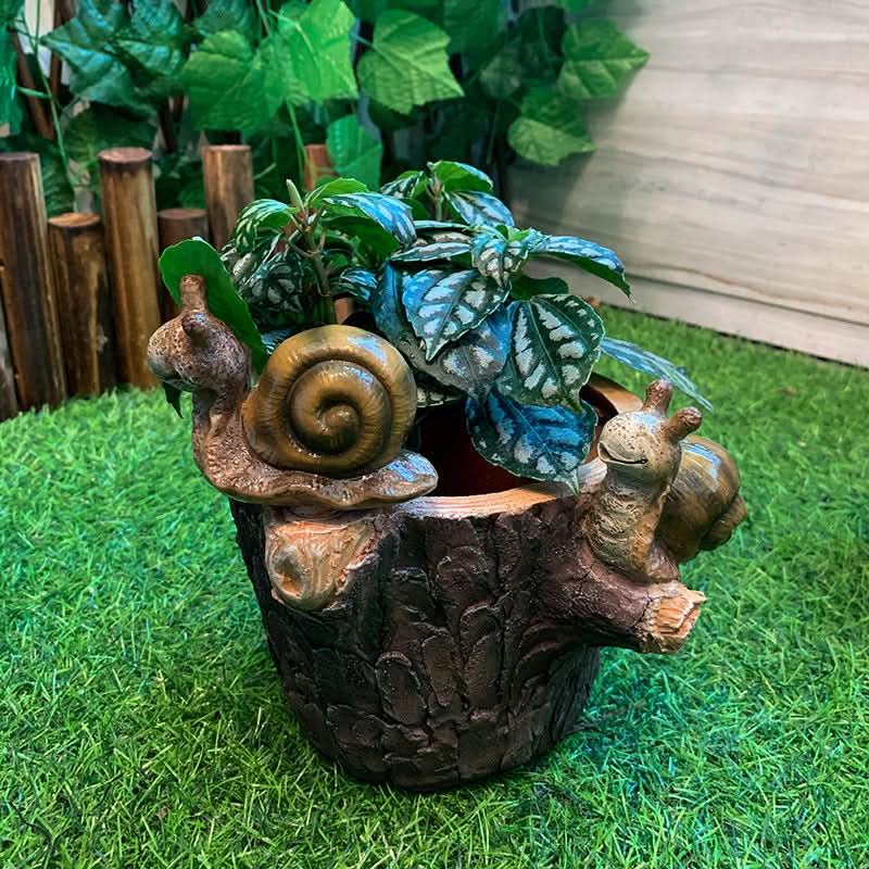 Bring a touch of whimsy to your garden with the Snail Flower Pot Garden Sculpture Ornament. Crafted from high-quality synthetic resin, this charming snail design adds a rustic, nature-inspired accent to any outdoor space. Whether placed on your patio, in flower beds, or as part of a garden display, this multifunctional sculpture doubles as a flower pot, offering both decorative beauty and practicality. Its durable, weather-resistant construction ensures it will withstand the elements season after season. Perfect for gardeners, nature lovers, or anyone looking to add a playful and unique touch to their yard, this snail flower pot is an easy way to enhance your outdoor décor with a fun, rustic flair. Ideal for small plants or flowers, it’s the perfect gift for those who appreciate quirky garden sculptures.
