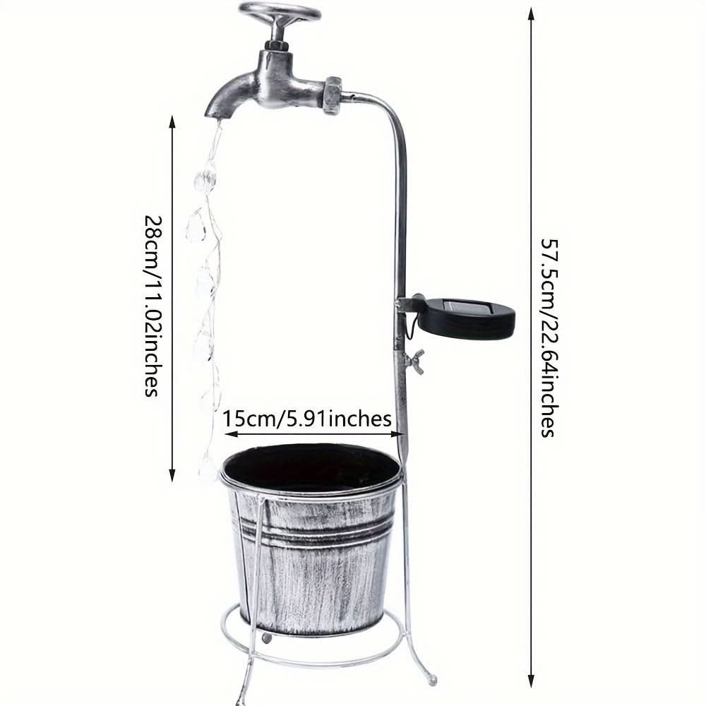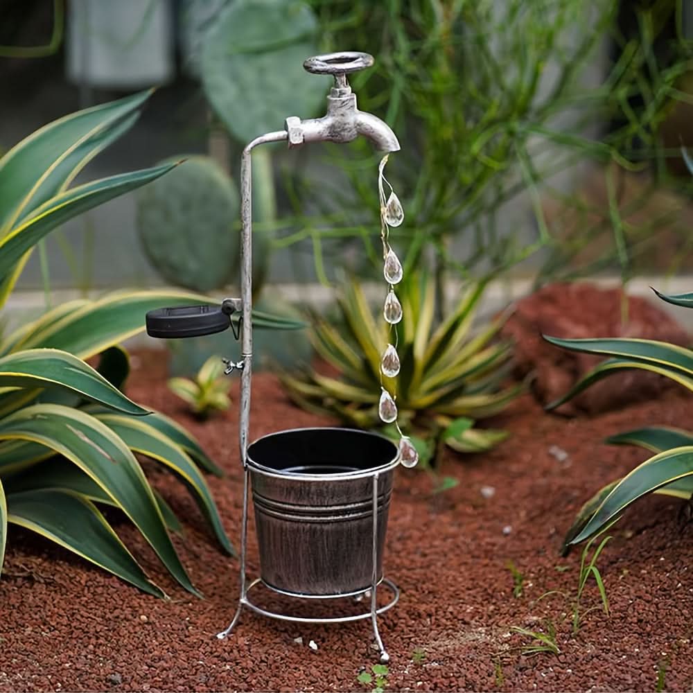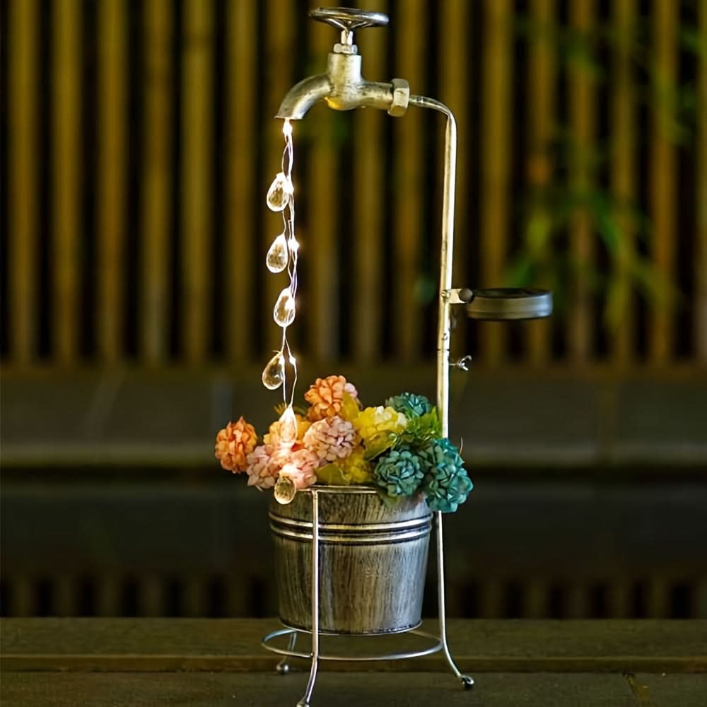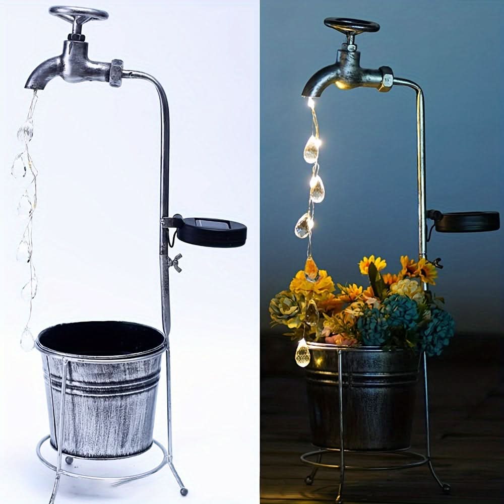 Add a whimsical touch to your garden or patio with this solar-powered LED faucet light, designed to mimic a sparkling water droplet effect. Crafted from durable iron with a matte finish, this unique outdoor light harnesses solar energy, charging by day and casting a soft, inviting glow at night—no wiring needed. The energy-efficient LED light source provides a steady, single-color illumination, perfect for enhancing garden paths, lawns, and patios with a touch of charm. Ideal for eco-conscious homeowners, this decorative solar light is both sustainable and low-maintenance, featuring a built-in solar battery that offers reliable nightly lighting. Elevate your outdoor decor with this delightful, water-inspired fairy light that’s easy to install and sure to captivate guests.