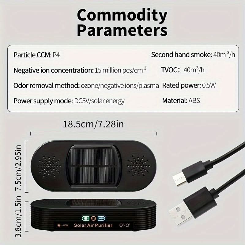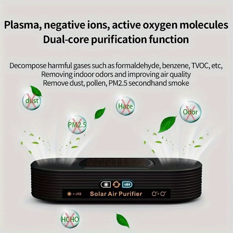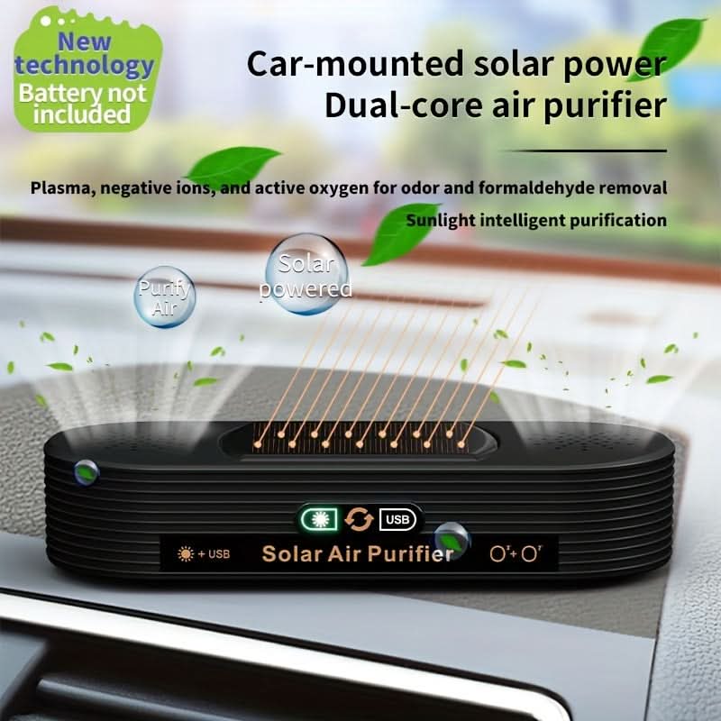 Keep your car and home smelling fresh with the Solar & USB Air Purifier Deodorizer. This dual-core, smart purifier effectively removes odors, decomposes formaldehyde, and purifies the air, ensuring a cleaner, healthier environment. Powered by both solar energy and USB, it offers a flexible and eco-friendly solution for air purification in cars, bedrooms, bathrooms, pet houses, and more.