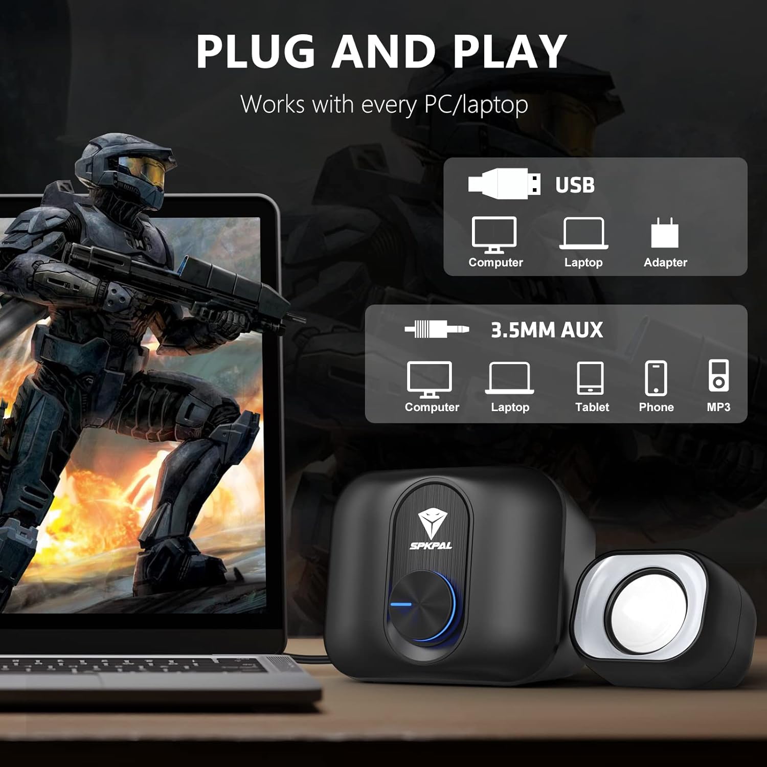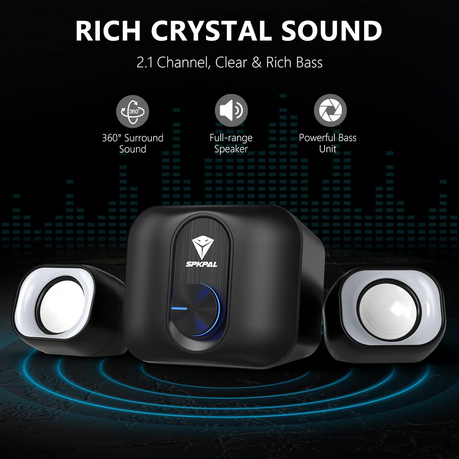 Enjoy immersive, room-filling sound with the SPKPAL 2.1 Computer Speaker System, designed for clear stereo audio and powerful bass. Featuring dual 3W satellite speakers and a 5W subwoofer, this compact setup delivers rich, balanced sound perfect for music, movies, and gaming. With USB-powered convenience and a universal 3.5mm AUX input, you can easily connect it to your laptop, desktop, tablet, or smartphone without needing an external power outlet. Front-facing volume controls allow quick adjustments, while the sleek black design complements any workspace. Handpicked from Abroad, this speaker system combines performance, portability, and modern style—ideal for home, office, or entertainment setups.