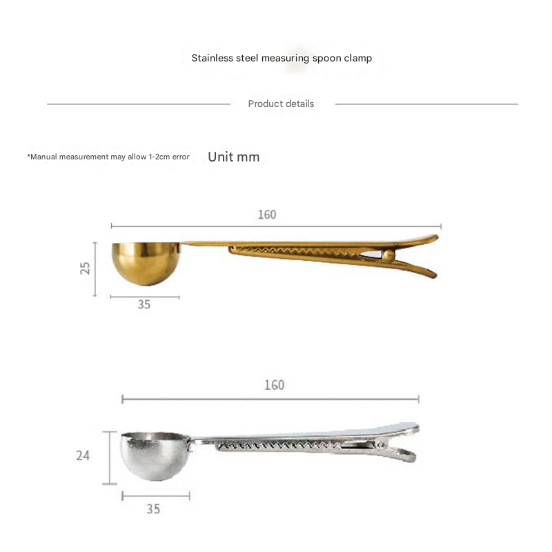 Brew the perfect cup every time with this Stainless Steel Coffee Measuring Spoon with Bag Clip—a stylish and functional must-have for any coffee lover. Made from durable 304 stainless steel, this 2-in-1 tool combines a precise coffee scoop with a built-in sealing clip to keep your coffee beans or grounds fresh and flavorful. Its elegant finish—available in silver, gold, or rose gold—adds a touch of sophistication to your kitchen counter or coffee station. Designed in an English-inspired style, it’s not only practical but also gift-worthy. Whether you're scooping espresso or sealing a bag of fresh roast, this utensil makes your morning ritual smoother and neater. Handpicked from Abroad, it brings global quality and everyday convenience into one sleek design.