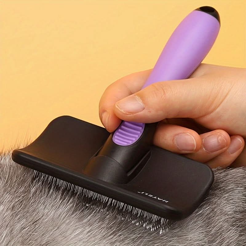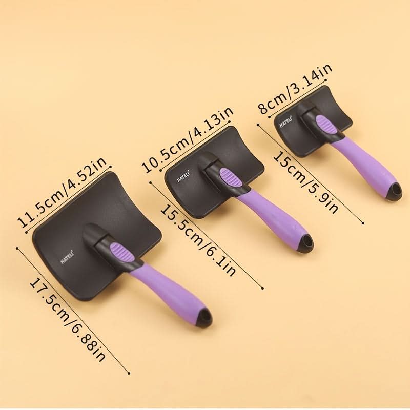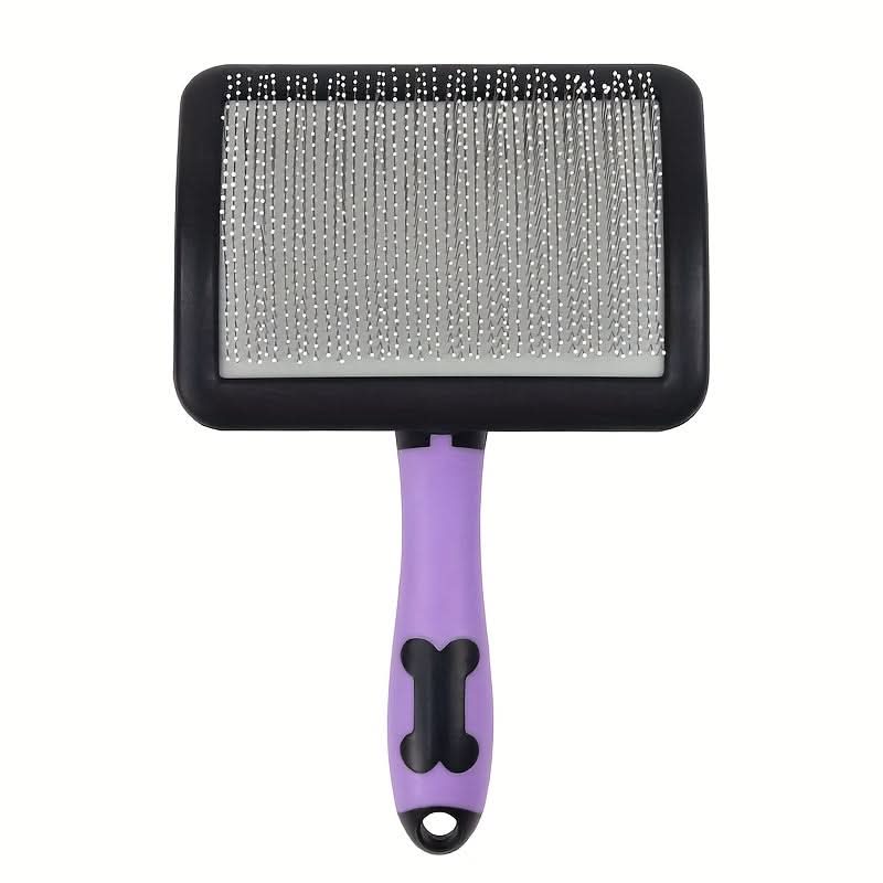 Available in sizes S, M, and L, this sleek purple brush is perfect for pets of all breeds and fur types. Regular use helps reduce shedding and promotes a shiny, healthy coat, making this brush a must-have grooming tool for every pet owner.