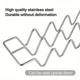 Elevate your taco nights with the JATEN Stainless Steel Taco Holder Rack, a must-have for any taco lover. This sturdy, 4-slot taco holder keeps shells upright and intact, perfect for loading up with all your favorite fillings without the mess. Made from premium stainless steel, it’s oven-safe for easy heating and dishwasher-safe for fast cleanup, adding convenience to your kitchen routine. The wave design not only secures tacos but also adds a stylish touch, ideal for family gatherings, BBQs, and holiday parties like Christmas, Easter, and Thanksgiving. Built for durability, this taco rack is a practical addition that makes meal prep easier and serving a breeze. Enjoy delicious tacos, beautifully presented and effortlessly organized!