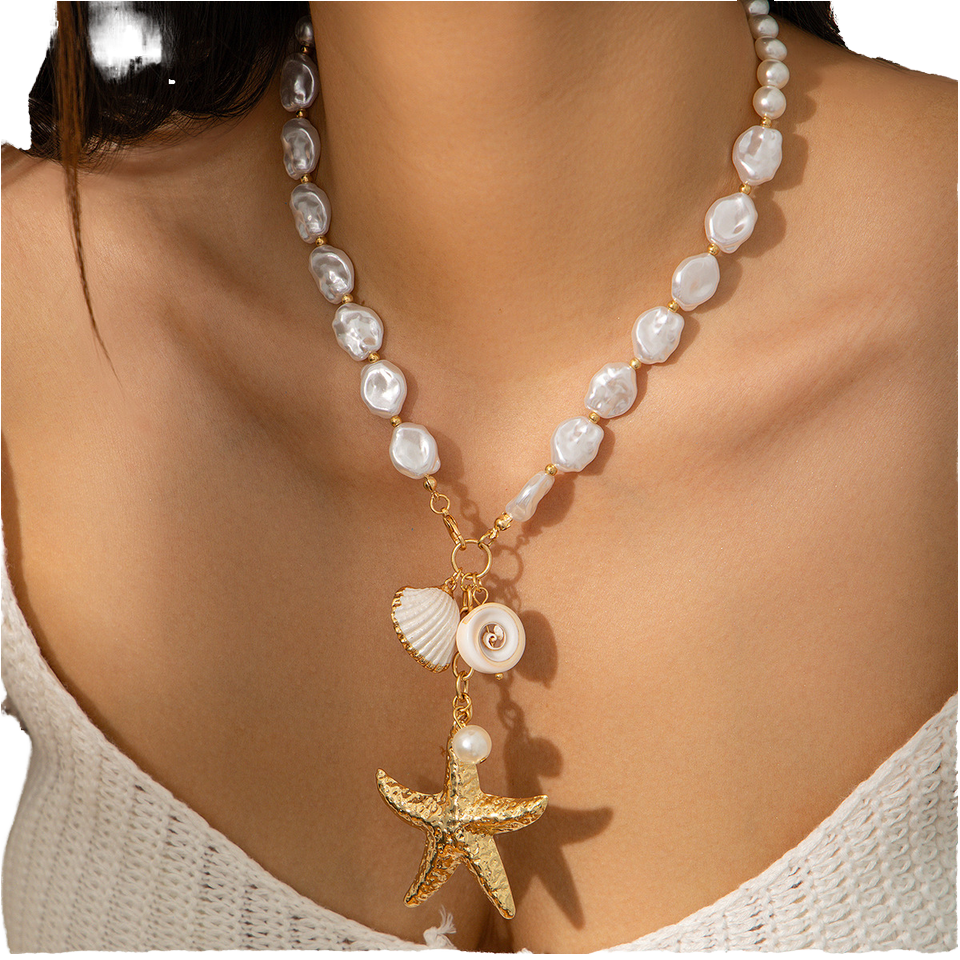 Bring a touch of coastal elegance to your everyday style with the Starfish & Pearl Ocean Charm Necklace. Crafted from durable alloy with resin accents, this necklace features a charming combination of starfish and pearl charms, accented with subtle crosses and pentagram chains for a trendy, contemporary look. Lightweight and comfortable, it sits gracefully along the clavicle, making it perfect for both casual outings and commuter-friendly wear. The single-layer design ensures simplicity while delivering eye-catching appeal, adding a playful yet sophisticated touch to any outfit. Handpicked from Abroad, this necklace embodies international fashion trends, offering a versatile accessory that blends seaside whimsy with modern style. Ideal for women who love fashionable, unique jewelry with a subtle statement.