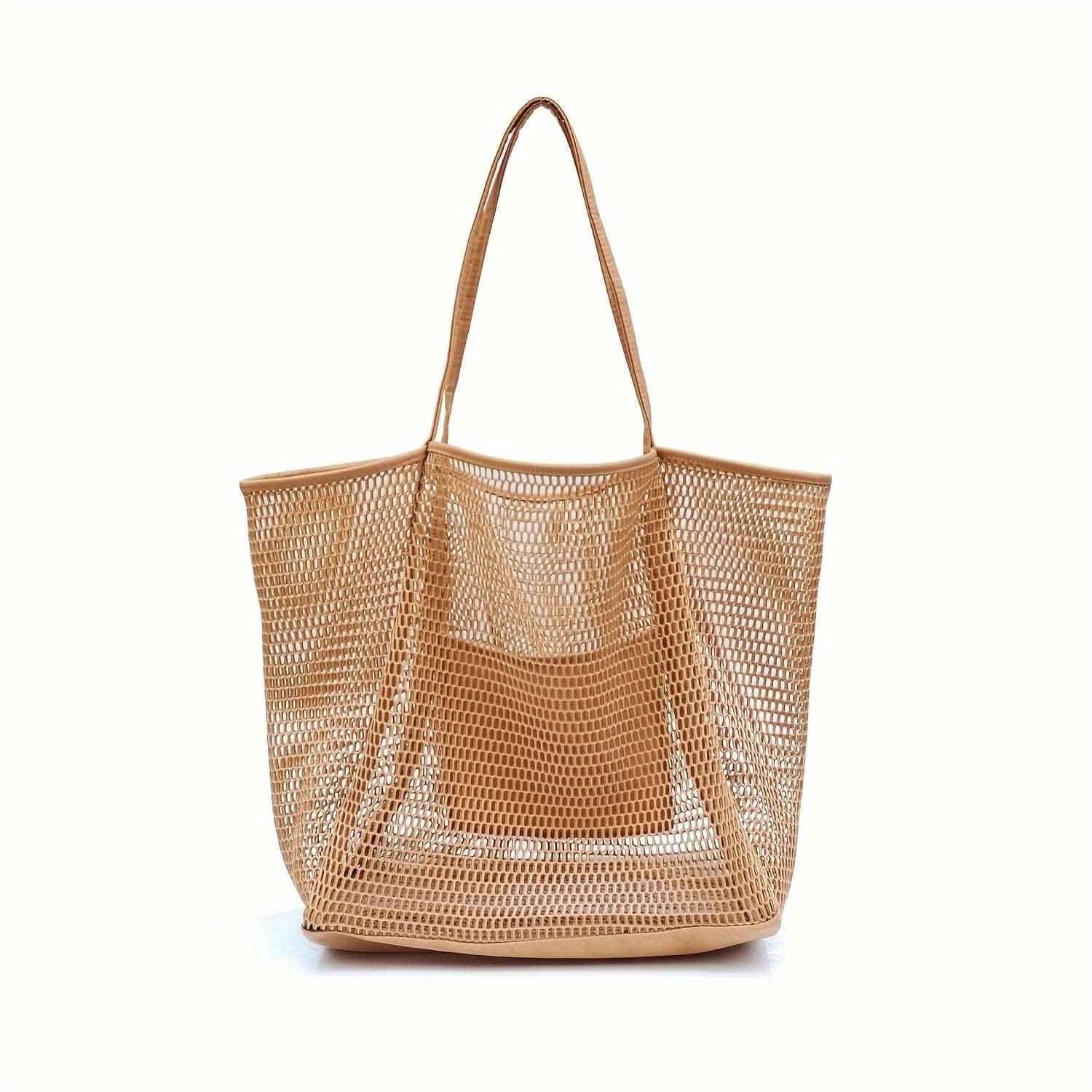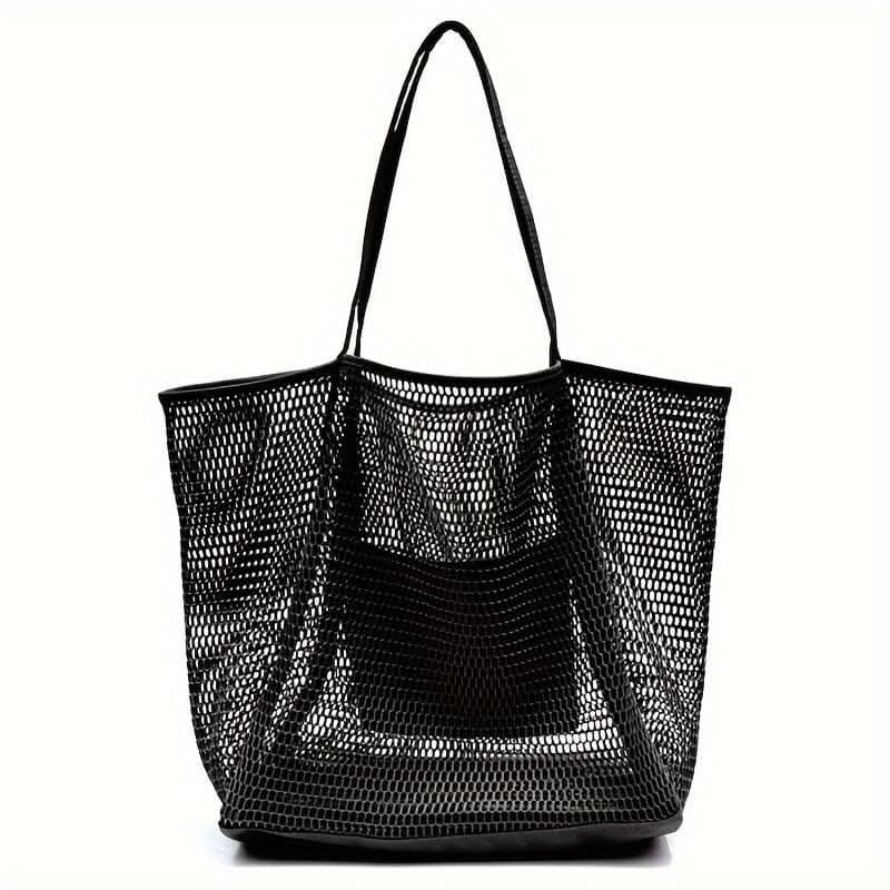 The Stylish Women's Woven Mesh Tote Bag combines durability with functionality, featuring a secure zipper and a versatile design ideal for the beach, travel, or grocery shopping. Perfect for carrying swimwear, toiletries, and everyday essentials, this shoulder carryall is a practical and fashionable choice.
