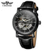 Upgrade your everyday style with the T-WINNER Automatic Mechanical Watch, crafted for men who value elegance and precision. Its 42mm round dial features a hollow design that showcases the intricate mechanical movement, providing a captivating view with every glance. The transparent back adds a sophisticated touch, while the mineral-reinforced glass ensures durability and clarity. A comfortable leather strap with a stainless steel pin buckle complements the polished alloy case, making it perfect for business meetings or casual outings. With a flat-top conical crown and reliable mechanical movement, this watch combines functionality with timeless design. Handpicked from Abroad, the T-WINNER is a versatile, stylish timepiece that brings luxury and confidence to your wrist.