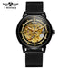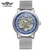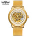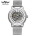 Elevate your professional style with the T-WINNER Automatic Mechanical Watch, designed for men who appreciate fine craftsmanship and modern elegance. This fully automatic timepiece features a 42mm round dial with luminous hands and a 24-hour display, ensuring clarity and precision day or night. The stainless steel mesh strap offers a sleek, comfortable fit, while the mineral-reinforced glass and 30m water resistance enhance durability for everyday wear. Its transparent back reveals the intricate mechanical movement — a true mark of sophistication. Handpicked from Abroad, this watch combines luxury, performance, and timeless design, making it a standout choice for both business and casual settings.