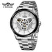 Upgrade your professional style with the T-WINNER 8147 Automatic Mechanical Watch, crafted for men who value precision, elegance, and reliability. The 42mm round dial offers a clear analog display with power reserve functionality, while the stainless steel band ensures durability and a polished, professional look. With 3BAR water resistance, this watch is practical for everyday wear, combining fashion with functionality. Its alloy case adds sophistication, making it suitable for business meetings, casual occasions, or special events. The automatic self-wind movement eliminates the need for batteries, delivering smooth and accurate timekeeping. Handpicked from Abroad, the WINNER 8147 blends modern design with timeless craftsmanship, making it an essential accessory for men seeking both style and performance.