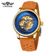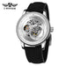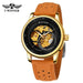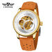 Experience timeless style with the T-Winner Hollow Automatic Watch, crafted for men who appreciate both fashion and functionality. Featuring a hollow mechanical dial, this watch offers a captivating view of its intricate automatic movement, combining elegance with precision. The 30M water resistance ensures durability for daily wear, while the transparent back showcases the fine craftsmanship inside. A durable alloy case and comfortable leather strap with pin buckle make it a perfect accessory for work, casual, or special occasions. The screw-down crown adds extra protection and refinement. Lightweight yet striking, this watch blends antique-inspired charm with modern engineering. Handpicked from Abroad, it brings global sophistication and quality right to your wrist. Ideal for those who seek a stylish, reliable, and eye-catching mechanical watch.