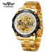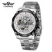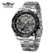 Elevate your style with the Winner Luxury Skeleton Automatic Mechanical Watch, a perfect blend of sophistication and modern craftsmanship. Featuring a captivating hollow dial that showcases the intricate mechanical movement, this timepiece is designed for men who appreciate precision and elegance. Its transparent back offers a glimpse of the refined engineering within, while the durable alloy strap and stainless steel butterfly clasp ensure lasting comfort and reliability. With a 46mm round dial and polished design, it’s ideal for both casual and formal occasions. Handpicked from Abroad, this watch adds a bold touch of European flair to your collection — a true statement of timeless fashion.