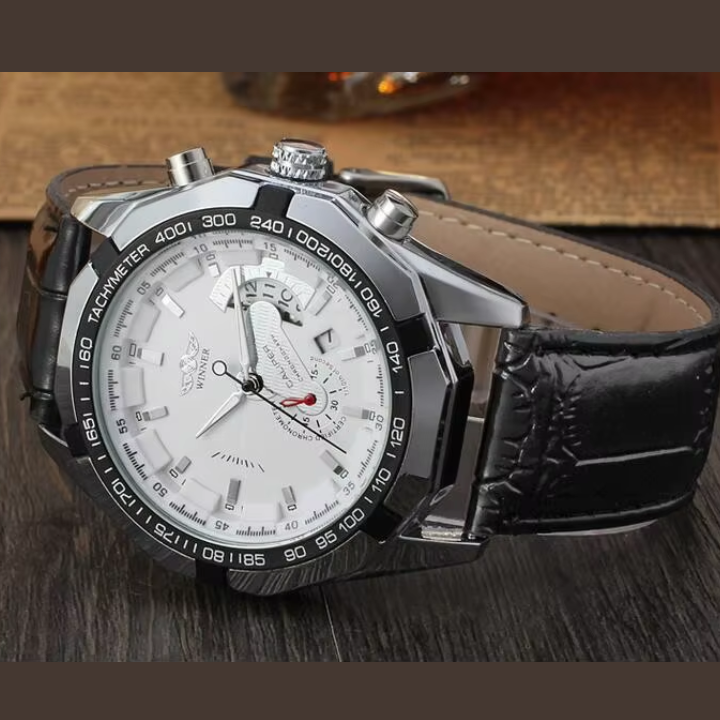 Discover the perfect fusion of elegance and engineering with the T-Winner Men’s Skeleton Automatic Watch. Designed for the modern gentleman, this watch showcases a striking open-dial design that reveals the precision of its mechanical movement. The durable stainless steel case and comfortable leather strap provide a refined look that complements both business and casual wear. Featuring a complete calendar display with auto date and day functions, it delivers both style and functionality. With water resistance up to 3BAR and a secure folding clasp, it’s built for daily confidence and sophistication. Sourced from Worldwide Suppliers, this premium automatic watch combines timeless design with international craftsmanship for the ultimate wristwear upgrade.