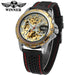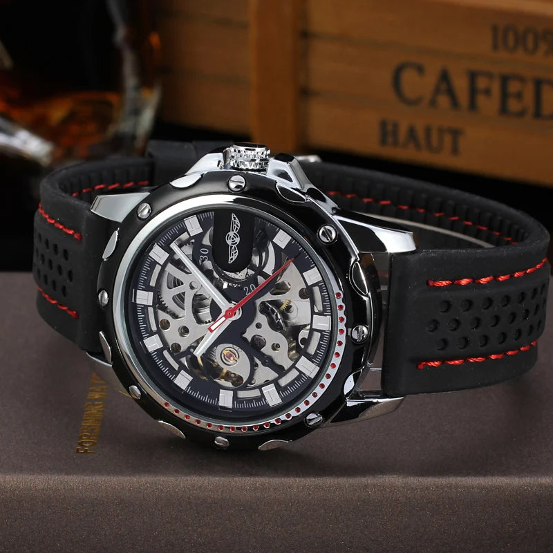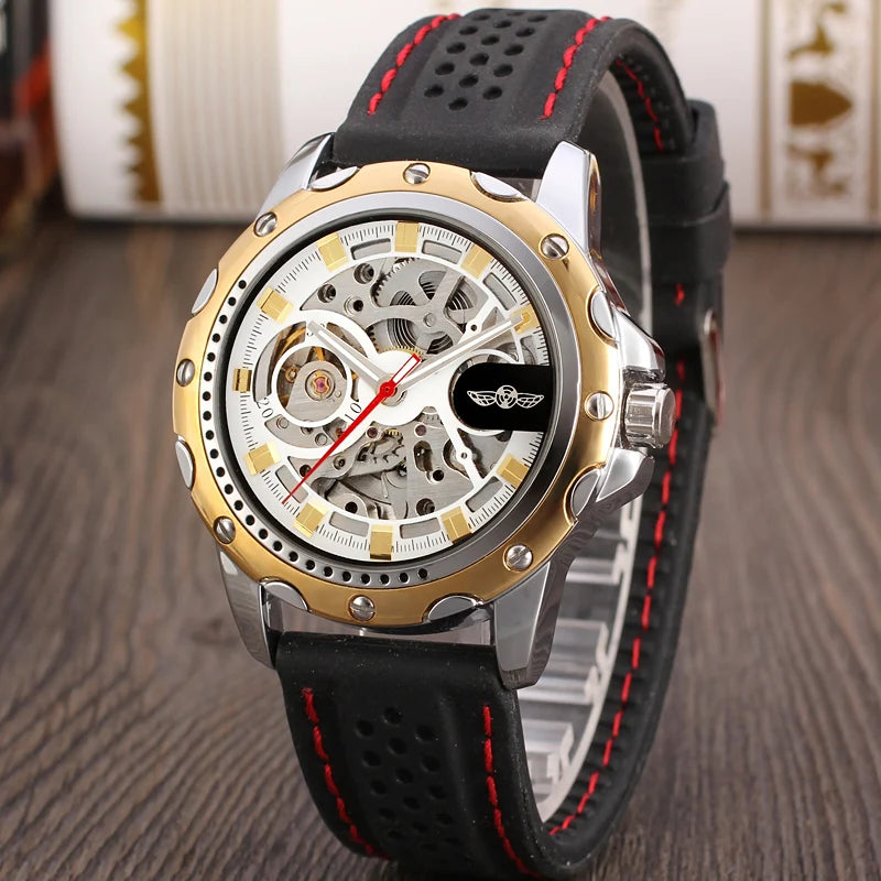 Upgrade your everyday style with the T-Winner Men’s Hollow Automatic Mechanical Watch, a sleek and modern accessory designed for men who value both fashion and function. Featuring a 4.3 cm round dial with a hollow skeleton design, this watch showcases the precision of its automatic mechanical movement. The durable alloy case is paired with a comfortable silicone strap and stainless steel pin buckle, making it lightweight and perfect for casual wear. Its mineral glass mirror ensures clear readability while protecting against everyday scratches. Handpicked from Abroad, this watch brings international quality and craftsmanship to your wrist. Ideal for leisure, work, or social outings, it combines contemporary design with reliable performance. The hollow dial adds a bold, stylish edge, making it a standout piece for any collection.