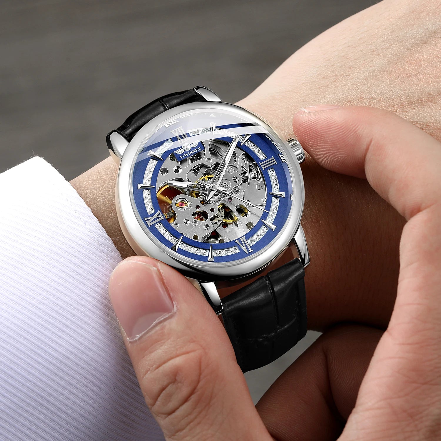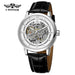 Discover the perfect combination of elegance and craftsmanship with the T-Winner Men’s Leather Automatic Mechanical Watch. This sophisticated timepiece features a 41.5mm round dial with a full skeleton design, allowing you to admire the intricate automatic movement at every glance. The luminous hands enhance readability, while the high-quality leather strap and durable alloy case ensure both comfort and longevity. With a sleek fashion-forward style, this watch is ideal for business, casual, or special occasions. Handpicked from Abroad, it represents international quality and timeless appeal, bringing classic mechanical mastery to your wrist. Its hollow-out design adds a modern touch, making it not just a watch, but a statement piece. Perfect for men who value precision, luxury, and style in one elegant accessory.