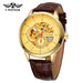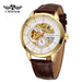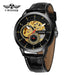 Showcase your sophisticated taste with the T-WINNER Skeleton Automatic Mechanical Watch, designed for men who appreciate fine craftsmanship and modern style. The openwork dial reveals the intricate mechanical movement, offering a captivating view of precision in motion. Featuring a 45.2mm round alloy case and a comfortable leather strap, this timepiece perfectly balances durability with elegance. The analog display delivers a classic look, while the stylish design makes it suitable for business, casual, or evening wear. Each detail reflects T-WINNER’s commitment to quality and innovation. Handpicked from Abroad, this skeleton watch adds a touch of luxury and individuality to every outfit — a must-have for every modern gentleman.