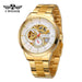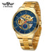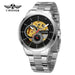 Experience timeless sophistication with the T-Winner Skeleton Automatic Mechanical Watch, designed for the modern man who values precision and style. Its hollow dial beautifully reveals the intricate mechanical movement, making every glance a showcase of craftsmanship. The 45.2mm round alloy case and comfortable 22mm strap create a perfect balance of durability and elegance, while the analog display adds a classic touch to your everyday look. Ideal for both business meetings and casual outings, this watch enhances your confidence and charm effortlessly. Sourced from Worldwide Suppliers, this statement piece blends luxury design with dependable performance — a true reflection of refined taste and individuality.