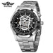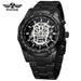 Make a bold statement with the T-WINNER Skull Skeleton Mechanical Watch, designed for men who appreciate daring style and precise craftsmanship. Featuring a 46.5mm round dial with a hollow skull design, this watch reveals the intricate mechanical movement beneath, combining edgy aesthetics with expert engineering. Luminous hands and a calendar month display ensure functionality alongside style, while the mineral-reinforced glass mirror provides clarity and durability. The alloy case and strap with a stainless steel folding clasp offer comfort and long-lasting wear, perfect for casual or leisure occasions. Its flat-top conical crown and transparent back highlight the watch’s meticulous construction. Handpicked from Abroad, this T-WINNER timepiece merges fashion-forward design with timeless mechanical sophistication, making it an essential accessory for men seeking individuality and elegance.