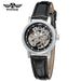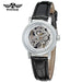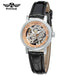 Experience timeless elegance with the T-Winner Women’s Skeleton Automatic Watch, a stunning blend of fashion and craftsmanship. Its open-heart skeleton design reveals the intricate inner workings of the automatic movement, creating a captivating visual appeal. The soft leather strap offers lasting comfort, while the luminous hands ensure visibility even in low light. Designed with a 33mm round dial and vintage-inspired alloy case, this watch adds sophistication to any outfit — from business attire to evening wear. With its graceful details and mechanical precision, it’s more than a timepiece; it’s a statement of style. Handpicked from Abroad, this exquisite skeleton watch embodies global craftsmanship and charm for modern women.