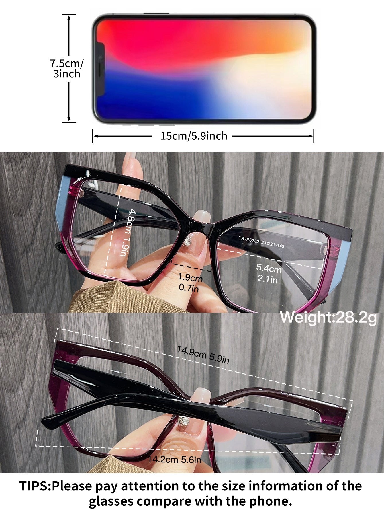 Elevate your everyday look with these stylish cat eye anti-blue light glasses, designed for women who want fashion and comfort in one frame. Made from lightweight TR90 material, they offer durability without adding pressure to your face, making them perfect for long hours of wear. The large-frame silhouette adds a bold, modern touch, giving your outfits an effortless upgrade.