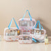 Stay organized on the go with this Transparent Toiletry Bag, designed for smart, stylish storage of your cosmetics, toiletries, and travel essentials. Made from waterproof PU with a clear exterior, it features a wet and dry separation compartment—perfect for keeping damp items like swimsuits or toothbrushes away from your dry clothes and makeup. Its cube shape maximizes space while remaining compact enough for any suitcase or gym bag. Whether you're heading to the beach, boarding a flight, or organizing your vanity, this versatile bag adapts to your needs. With a modern, minimalist design and sturdy handle for easy carrying, it combines function and fashion seamlessly. Handpicked from Abroad, it's a must-have for travelers who value both style and practicality.