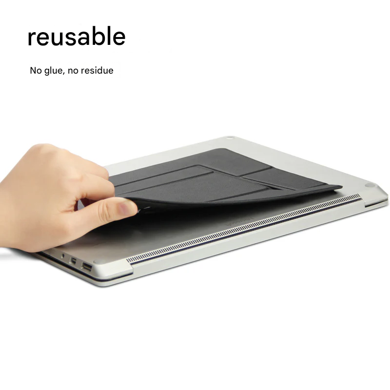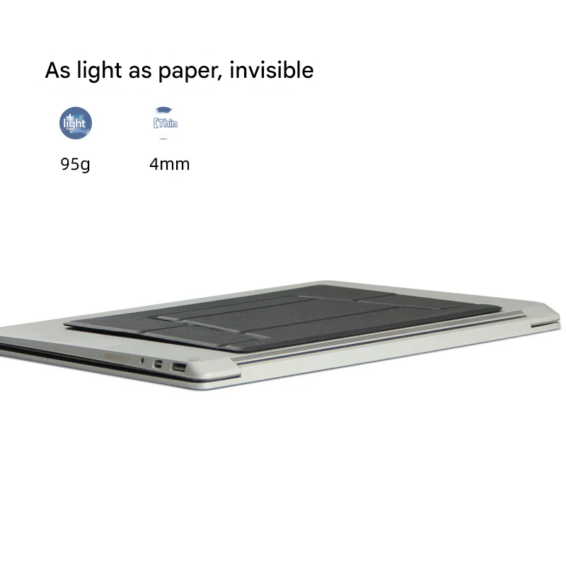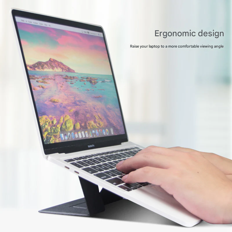 Enhance your workspace with this sleek and portable laptop stand, designed for comfort and efficiency. Crafted from premium PU leather with a built-in magnetic structure, this foldable stand provides dual-angle adjustment to improve posture and reduce neck strain. Its trapezoidal adhesive design ensures a secure grip on your laptop while remaining invisible when folded, making it an ideal companion for on-the-go professionals.