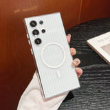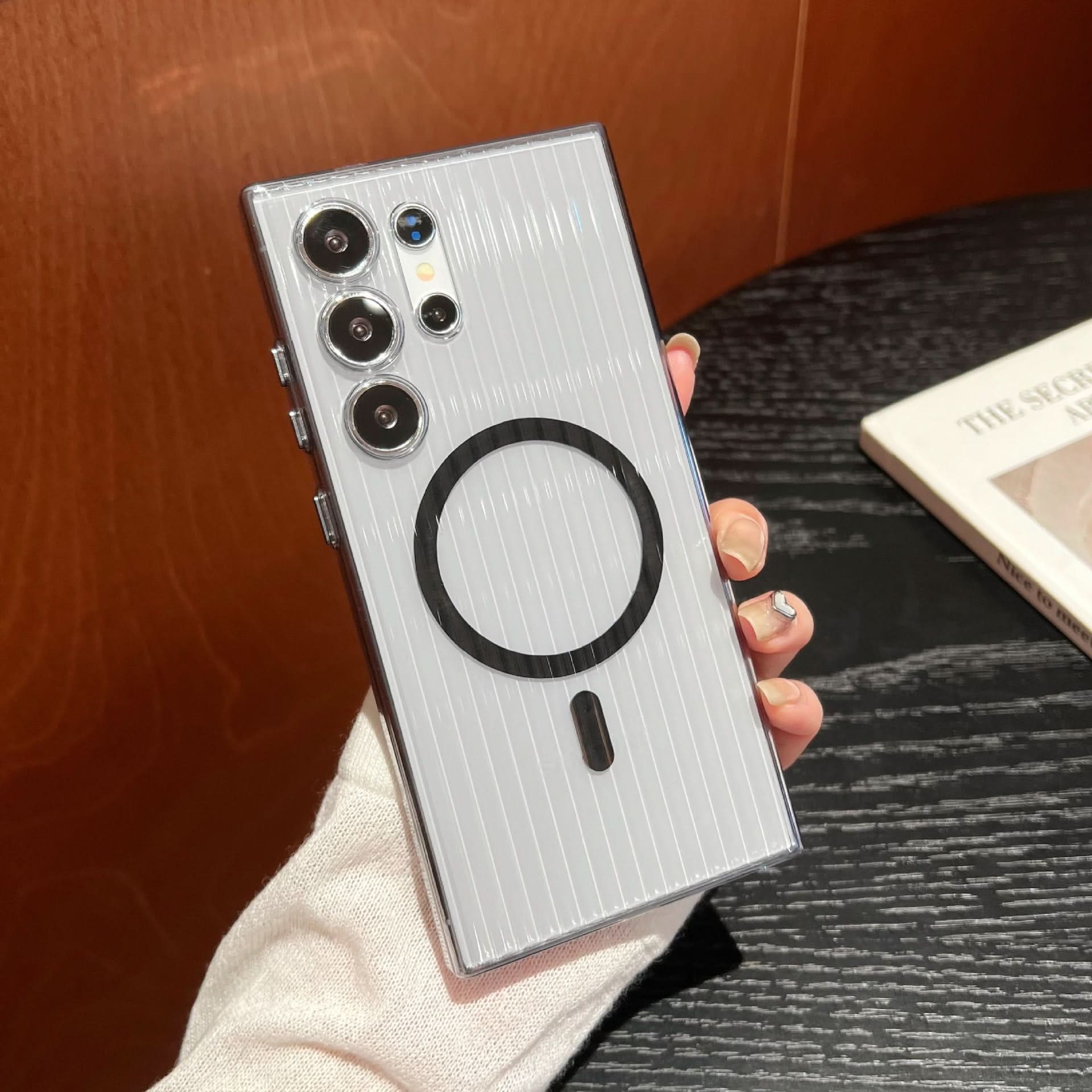 Protect your Samsung S25, S25 Plus, or S25 Ultra with this sleek ultra-thin magnetic case, designed for durability and style. Made from high-quality non-yellowing PC material, this case maintains its clarity and freshness over time, resisting discoloration for a long-lasting premium look. The corrugated pattern adds a unique texture, enhancing grip and comfort while reducing fingerprints.