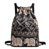 Featuring a comfortable physiological curve back panel, it reduces strain on your shoulders, making it perfect for long hours of wear. The secure drawstring closure allows quick access, while the stylish printed designs—including leaves, elephants, ink peonies, beauty trees, rabbits, and pink birds—add a unique touch.