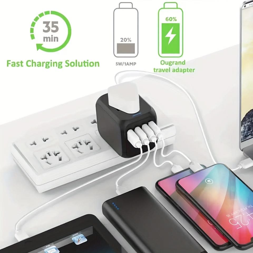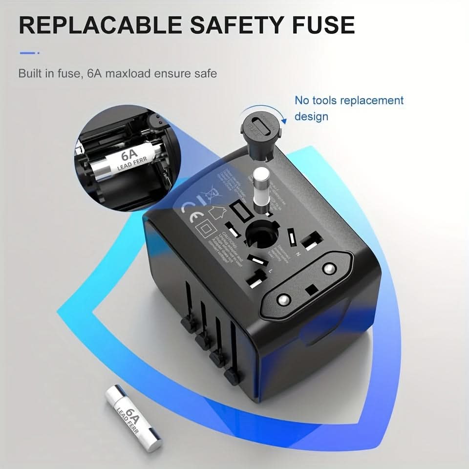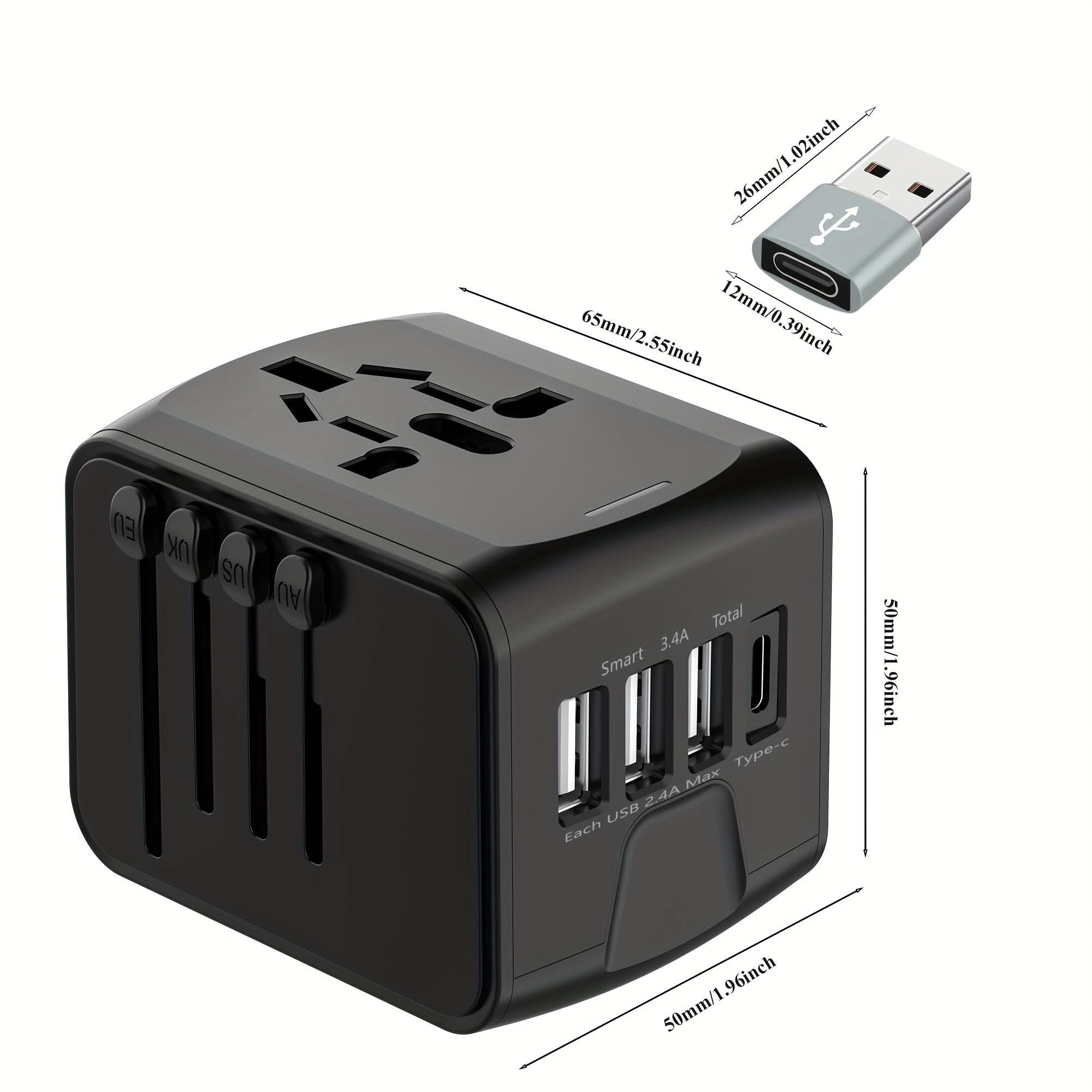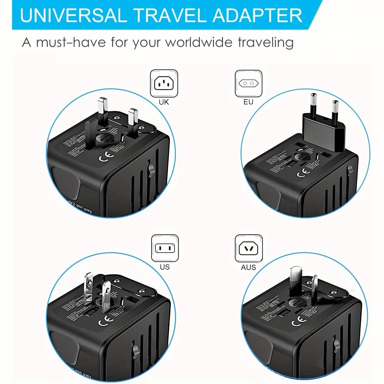 Stay powered up worldwide with this Universal Travel Plug Adapter, designed to keep your devices charged across 150+ countries, including the US, UK, EU, AU, and Asia. Equipped with 4 jacks and multiple ports, including a 2.4A USB-A and 3.0A USB-C, this compact adapter provides fast, reliable charging for your smartphone, tablet, laptop, and more. Its lightweight, travel-friendly design makes it easy to pack, while its durable PC shell ensures long-lasting safety and performance. Operating within a voltage range of 110-250V, this adapter is ideal for frequent travelers who need a versatile, all-in-one charging solution. Enjoy seamless charging wherever your adventures take you with this dependable travel companion, perfect for business or leisure trips.