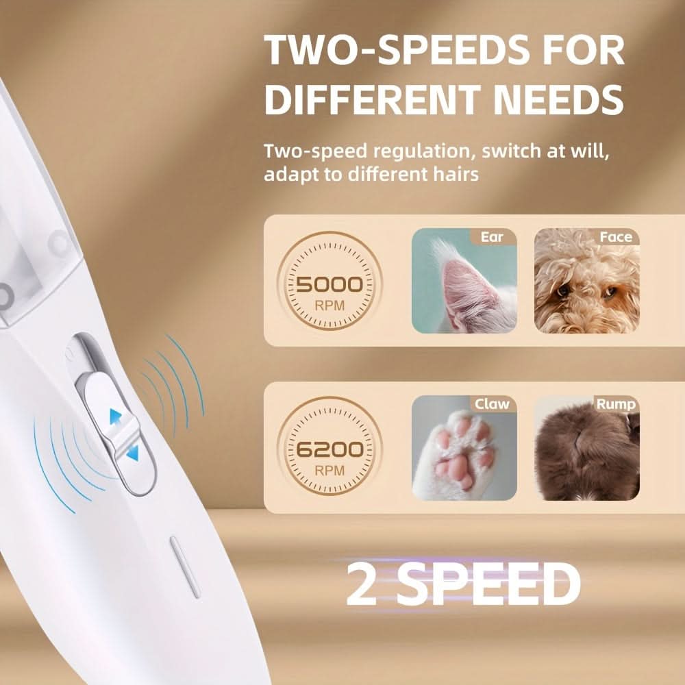 Simplify pet grooming with the USB Rechargeable Pet Hair Grooming Kit. Perfect for dogs and cats, this electric deshedding tool ensures precise trimming of paws, ears, and other delicate areas. Powered by a long-lasting lithium battery, it offers cordless convenience for hassle-free use. The low-noise operation keeps your pet relaxed during grooming, while the ergonomic design ensures comfort and control for you. Its sharp yet pet-safe blades effectively trim and deshed, promoting a healthy and tangle-free coat. Whether managing thick fur or tidying up between professional grooming sessions, this kit delivers reliable performance every time. Compact and lightweight, it’s easy to carry and store. Keep your furry friend looking their best with this versatile, user-friendly grooming solution.