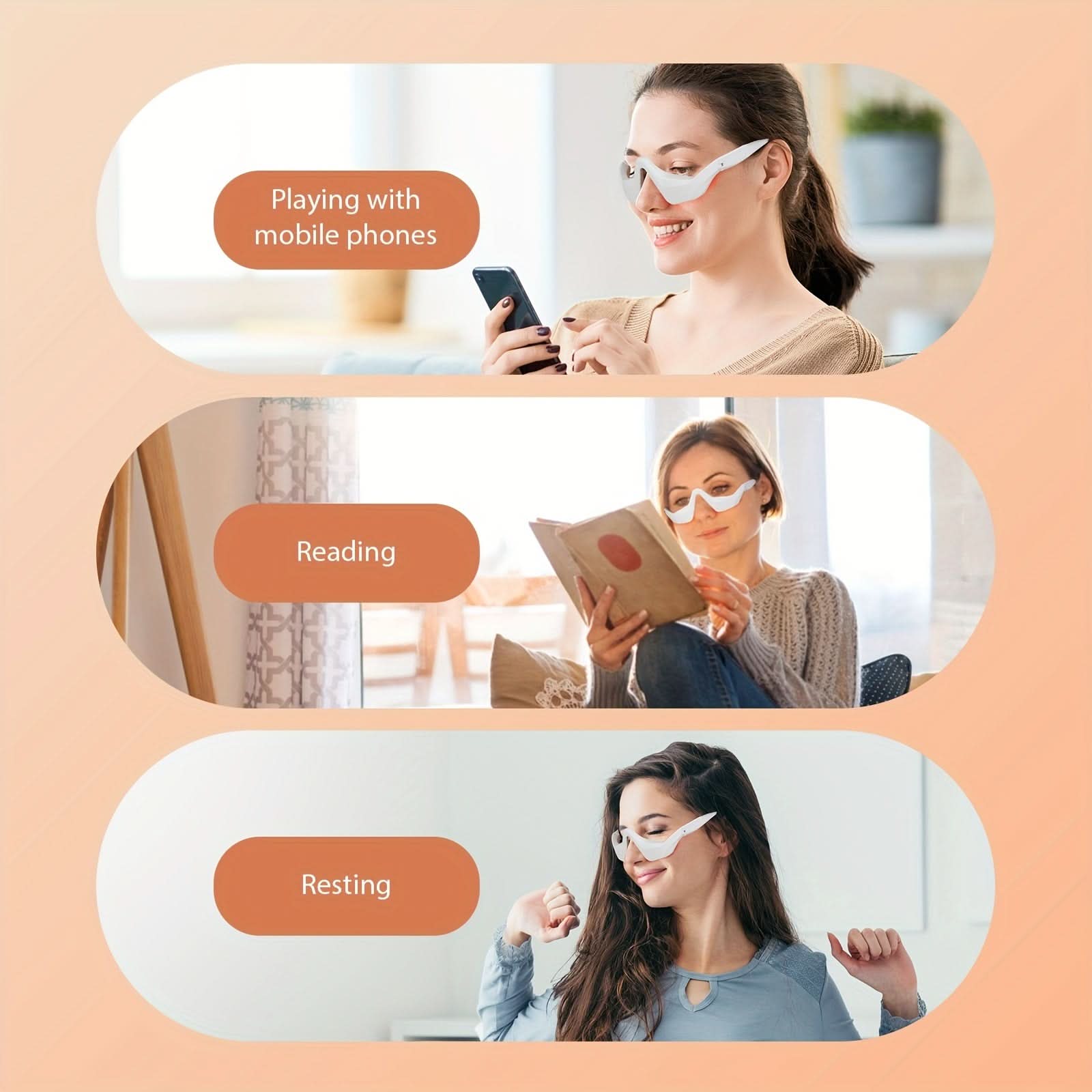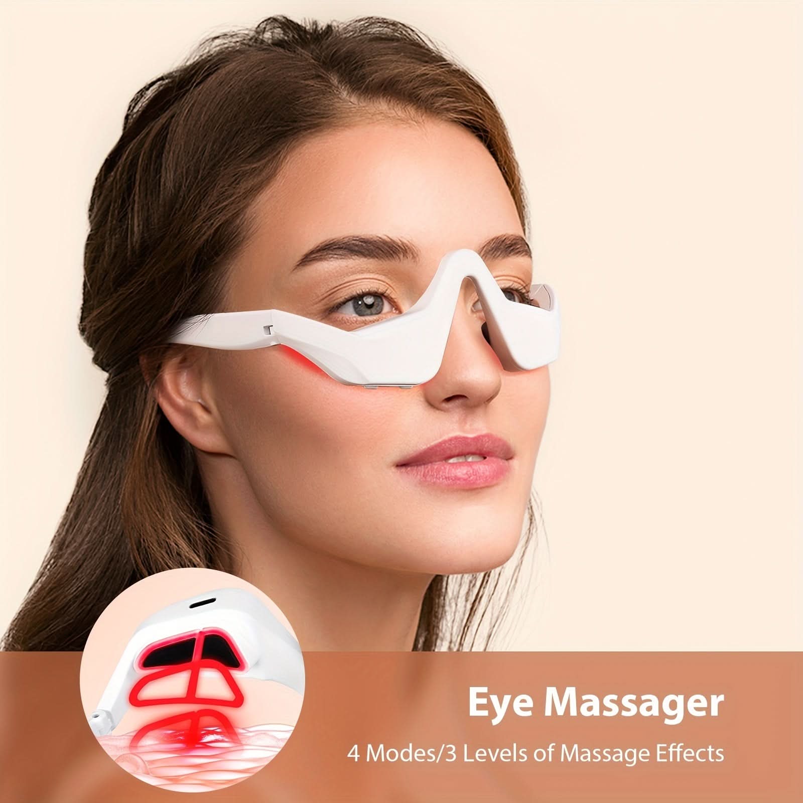 Rejuvenate tired eyes with the USB Rechargeable 3D Eye Massager, your perfect companion for eye care and relaxation. Designed with 4 massage modes and 3 adjustable intensity levels, this device combines gentle vibration, air compression, and soothing heat to relieve eye strain, reduce puffiness, and promote relaxation. The compact, lightweight design features soft ABS and silicone materials for a comfortable fit, making it ideal for daily use at home or on the go. With a quick 30-minute charging time and up to 90 minutes of usage per charge, this eye massager ensures lasting relief without interruption. Powered by a built-in rechargeable lithium battery, it offers cordless convenience for your busy lifestyle. Whether you're working long hours, traveling, or simply unwinding, this eye massager is a must-have for refreshing and soothing your eyes. Discover a new level of comfort today!