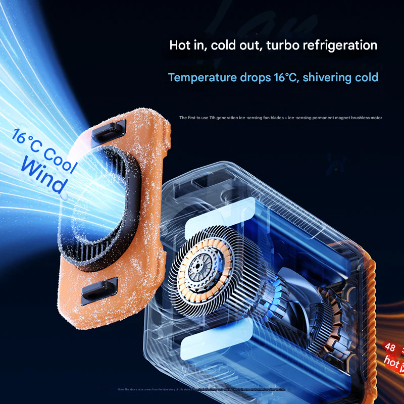 Equipped with a 6000mAh built-in lithium battery, it offers up to 6 hours of continuous use. The brushless motor ensures quiet operation under 36dB(A), while the built-in flashlight adds extra utility for low-light settings. The compact, waist-hanging design and USB charging make it ultra-portable and convenient for long, active days.