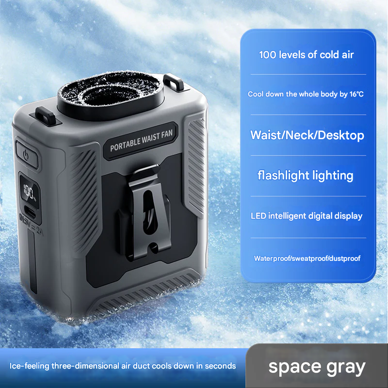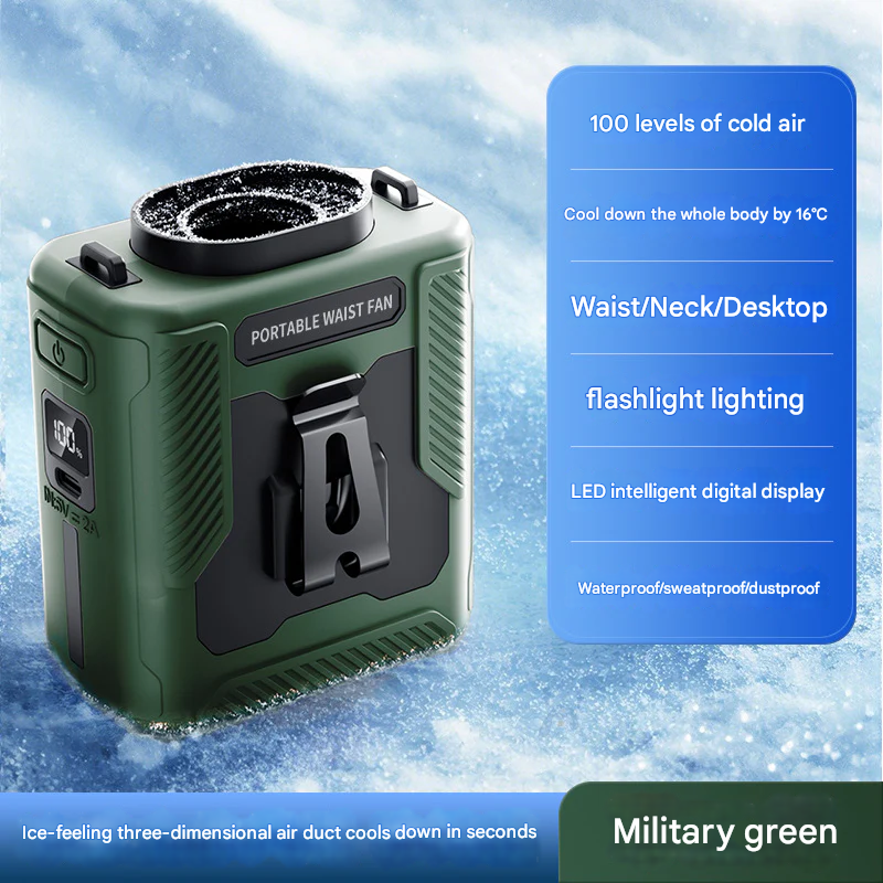 Stay cool and comfortable on the go with this Waist-Mounted USB Rechargeable Fan, a Best-Selling Worldwide cooling gadget from our International Collection. Designed for high-demand environments like construction sites, outdoor work, and food delivery, this bladeless cooling fan delivers powerful airflow with a 100-speed digital control system.