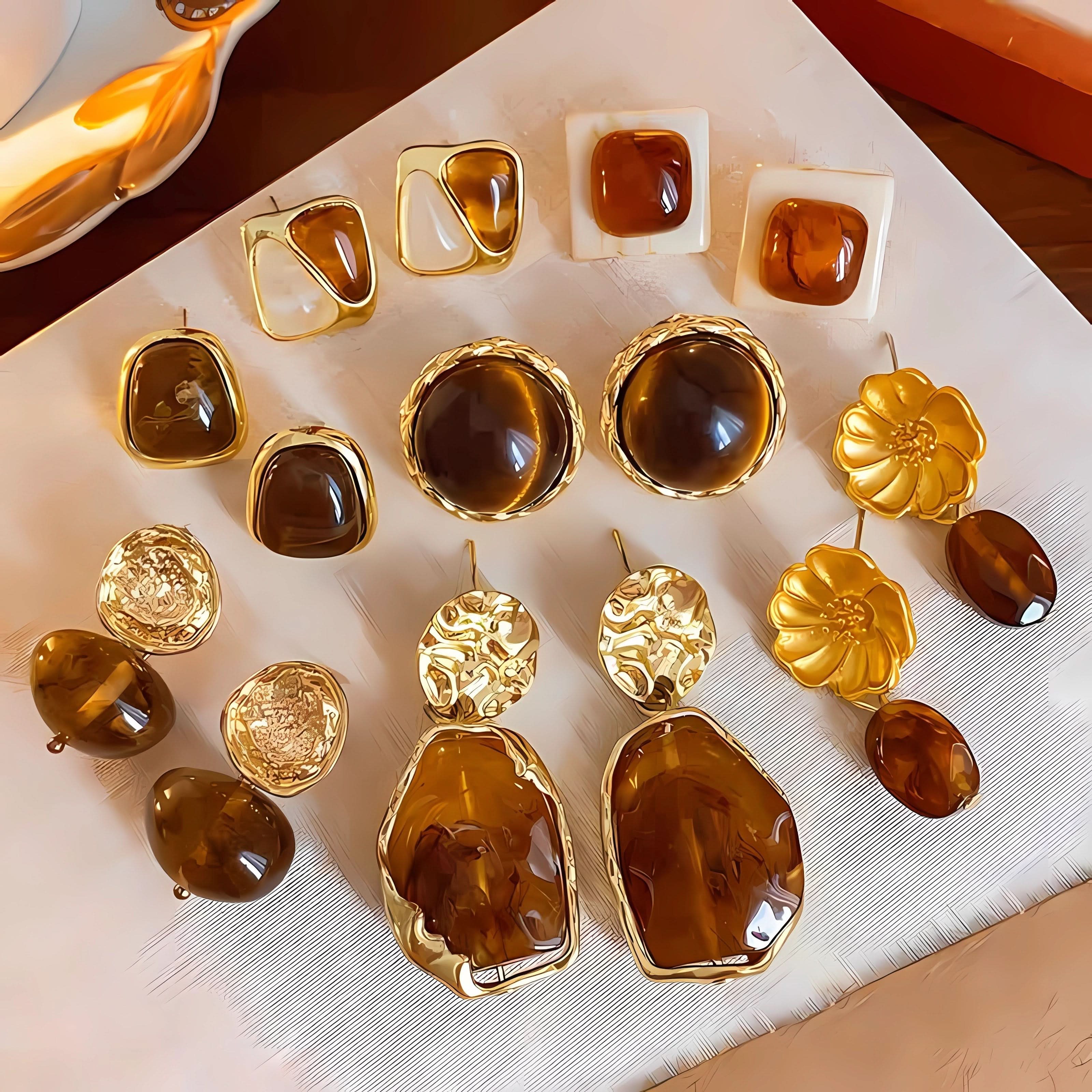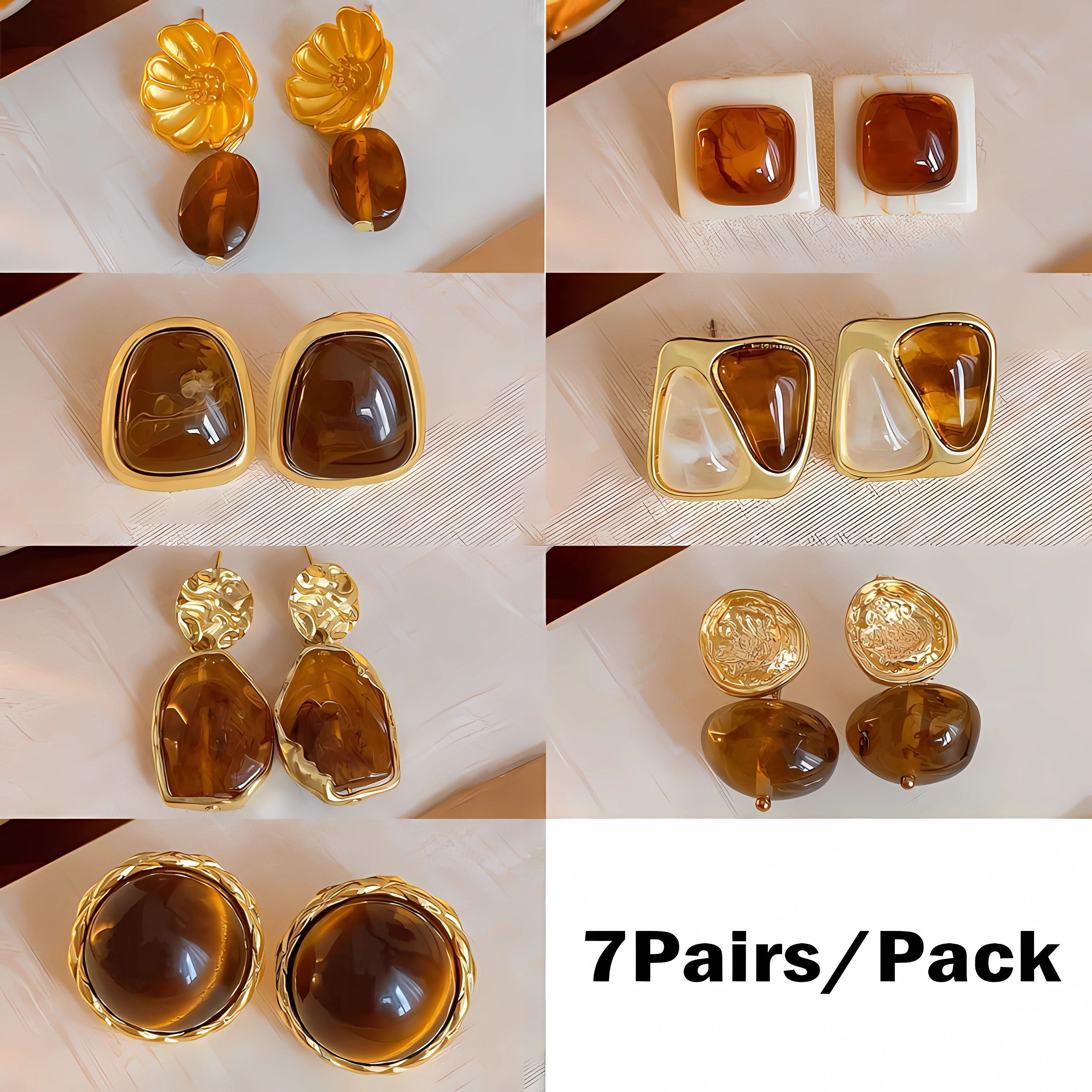 Embrace timeless elegance with this set of seven pairs of vintage-inspired amber cat eye earrings. Crafted with high-quality resin that mimics the beauty of natural amber, each pair showcases a unique style, perfect for adding a touch of retro sophistication to any outfit. These earrings feature stainless steel posts, ensuring durability and comfort for all-day wear. Ideal for all seasons, their rich tones complement both autumn and winter fashion effortlessly. Whether you’re shopping for a stylish gift for mom or looking to add variety to your own collection, this set offers a versatile selection for any occasion. Thoughtfully packaged, they make an excellent gift choice for holidays like Thanksgiving or Christmas.