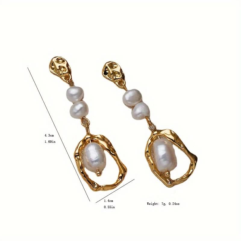 Elevate your elegance with these vintage-inspired freshwater pearl drop earrings. Each earring features a lustrous, natural pearl delicately set in 18K gold-plated copper, creating a timeless look perfect for any occasion. The 925 sterling silver ear posts add comfort and durability, making these earrings ideal for daily wear or special celebrations. With a nod to retro charm and classic design, they’re a beautiful addition to any jewelry collection and a meaningful gift for birthdays, anniversaries, or festive holidays. Whether you're dressing up for a party or adding a touch of luxury to your everyday style, these exquisite pearl earrings are the perfect choice for refined sophistication.