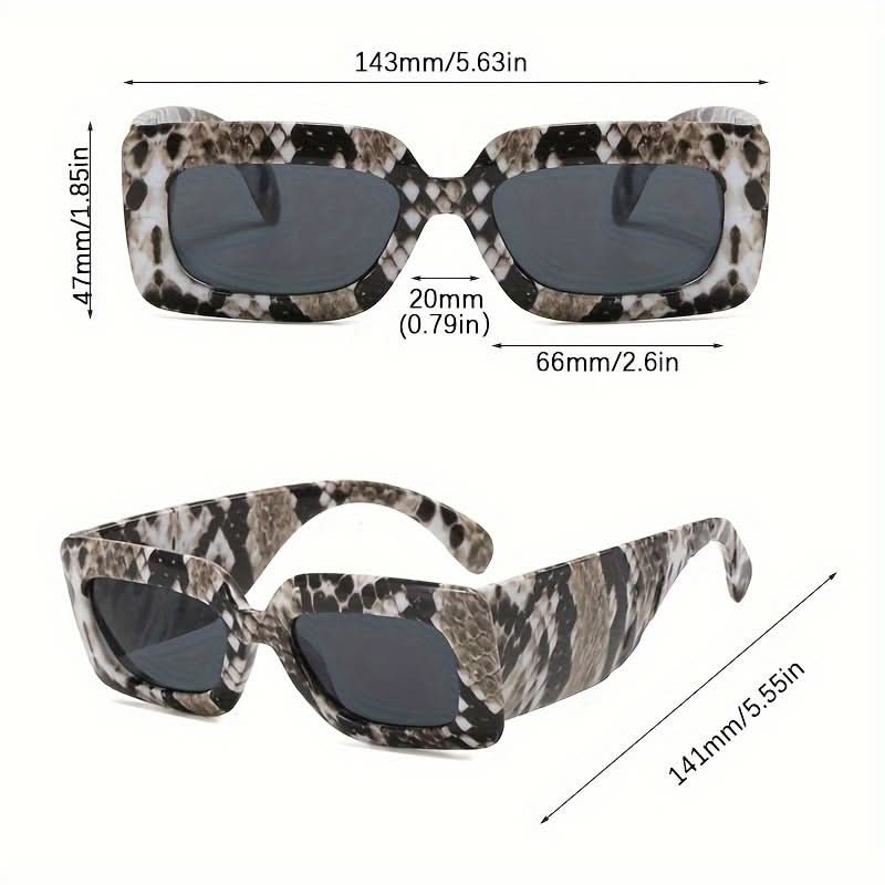 Elevate your look with these Vintage Snake Print Square Sunglasses, the perfect blend of bold fashion and functional protection. Designed for the modern woman, these trendy sunglasses feature a unique snake print pattern on a stylish, wide-leg square frame. Crafted with a durable polycarbonate frame and anti-reflective lenses, they provide UV protection and clarity, making them perfect for outdoor activities like climbing or casual everyday wear. The lightweight design ensures comfort, while the rectangular shape flatters a variety of face shapes. Whether you're hitting the trails or enjoying a sunny day, these sunglasses are a must-have accessory that combines style with practicality. Perfect for fashion-forward individuals who want to make a statement while protecting their eyes.