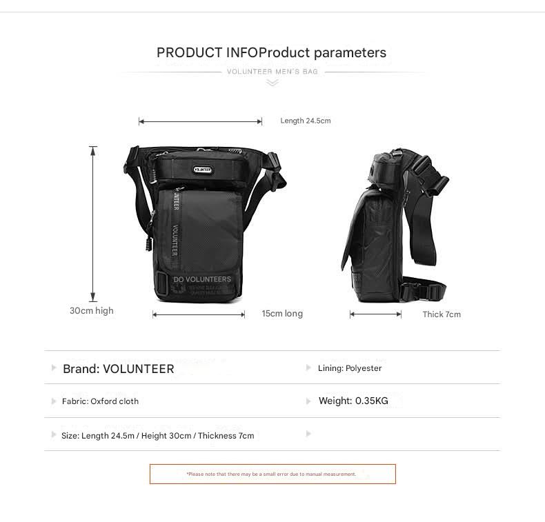 Gear up for every adventure with our Men's Outdoor Sports Waist and Leg Bag, expertly crafted from rugged nylon Oxford cloth for superior durability. Designed for mountaineering, hiking, and everyday outdoor activities, this multi-functional bag offers a secure, comfortable fit around the waist and leg, keeping your essentials within easy reach.