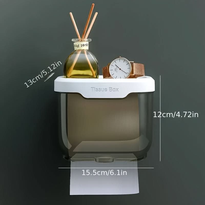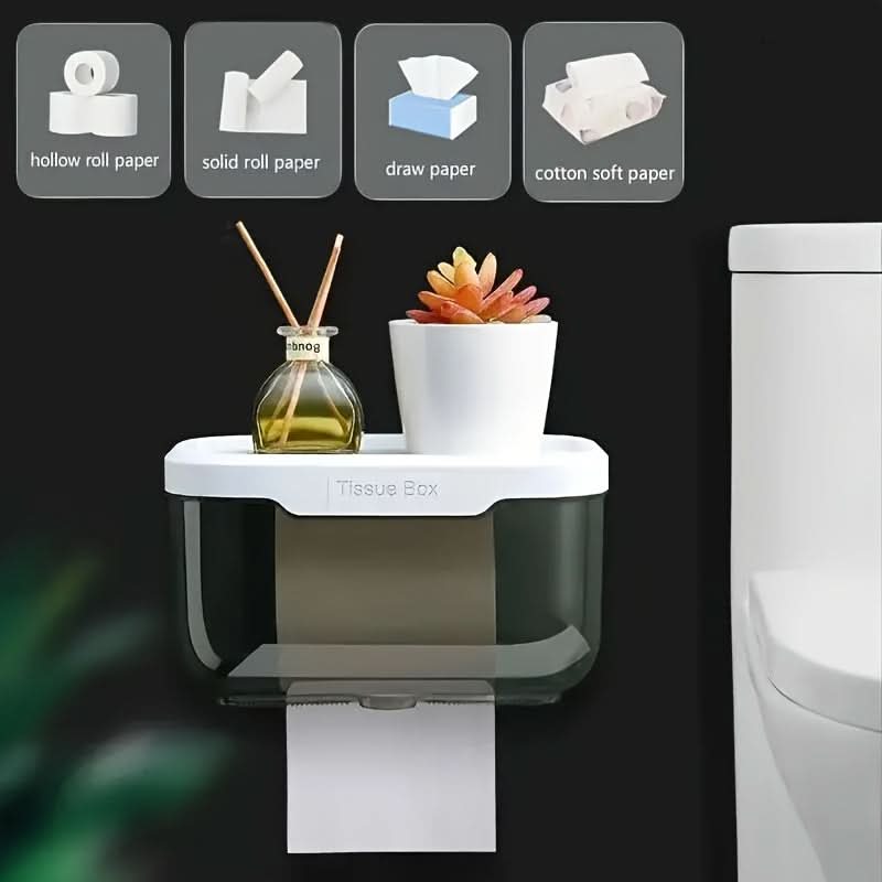 Upgrade your bathroom storage with this sleek, wall-mounted tissue holder featuring a convenient storage shelf. Made from durable, high-refractive-index polymer, this tissue dispenser offers both strength and style with its eye-catching blue color. Perfect for maximizing space in bathrooms or small areas, the built-in shelf provides a handy spot for essentials like phones, keys, or small toiletries. Its adhesive installation makes it simple to mount without the need for drilling, protecting your walls and making setup quick and easy. Designed for universal use, this versatile tissue holder is ideal for home and office bathrooms, combining practicality with a modern look. Declutter and enhance your space with this all-in-one tissue dispenser and storage solution!