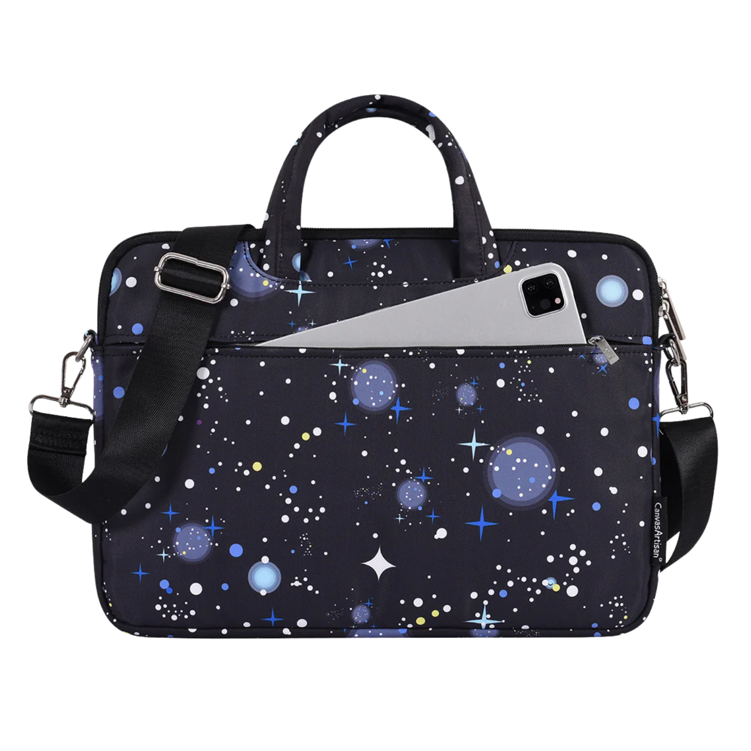 Bring stellar style to your tech gear with this Galaxy Laptop Bag, designed for laptops from ASUS, Huawei, MacBook, Xiaomi, Dell, HP, and Lenovo. Its cosmic starry sky print makes a bold impression while offering the practical features professionals and students need.