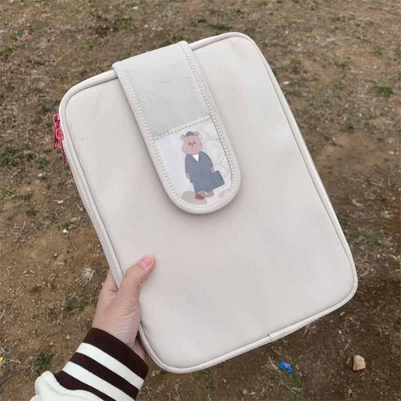 Featuring a sleek solid color design in white or yellow, this bag is perfect for students and professionals alike. The soft handle and lightweight construction make it comfortable to carry, while the sturdy zipper closure ensures your devices are securely enclosed.