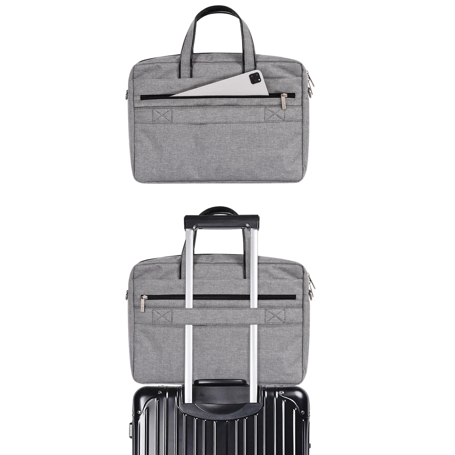 Spacious yet sleek, it includes a main zip compartment, two front zip pockets, and a padded inner sleeve—perfect for keeping your laptop, charger, documents, and accessories in place. The soft shoulder strap and sturdy handles offer comfort whether you're commuting or traveling.
