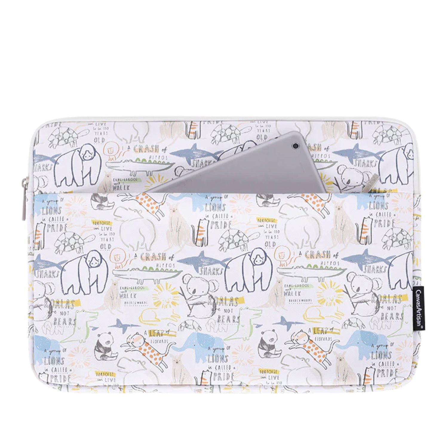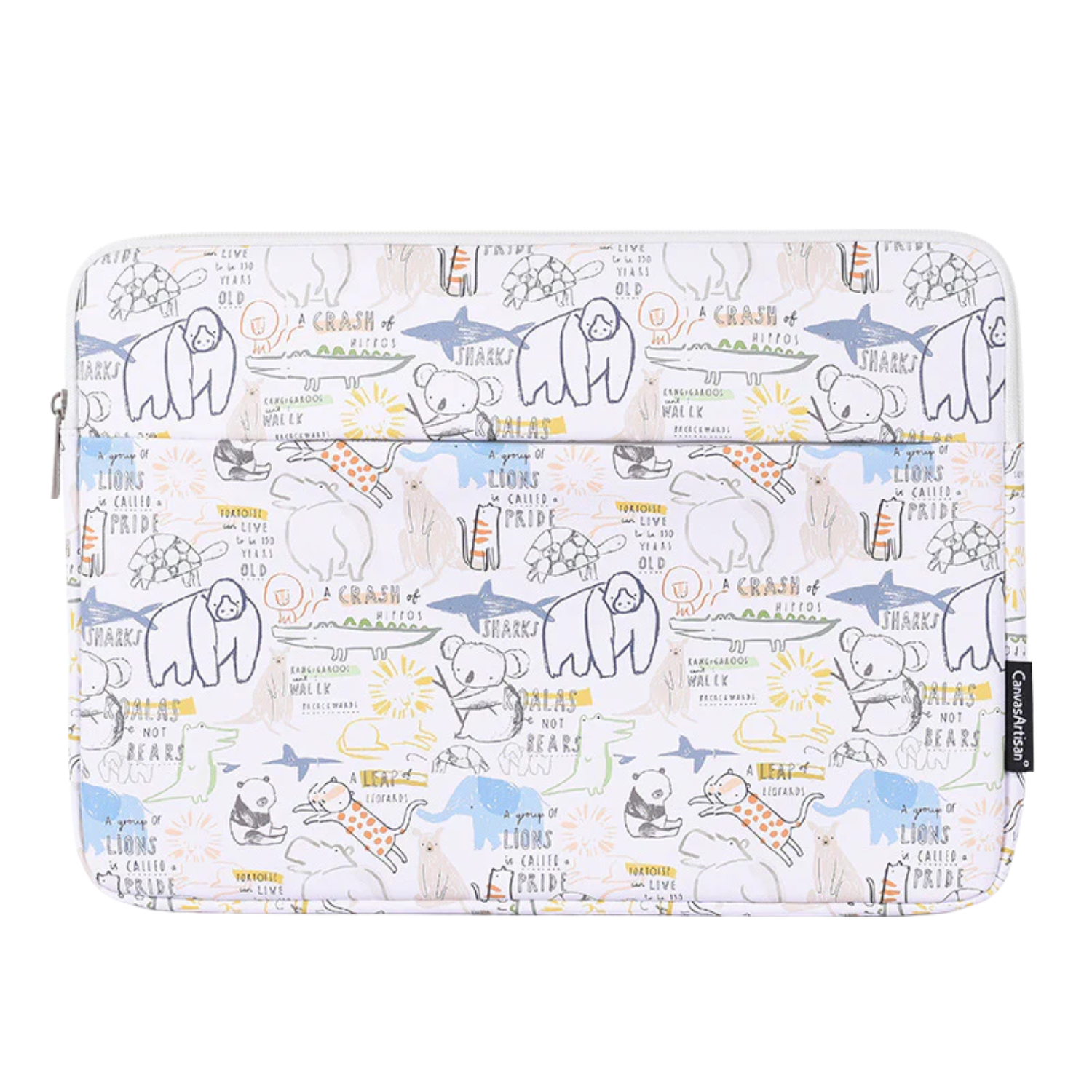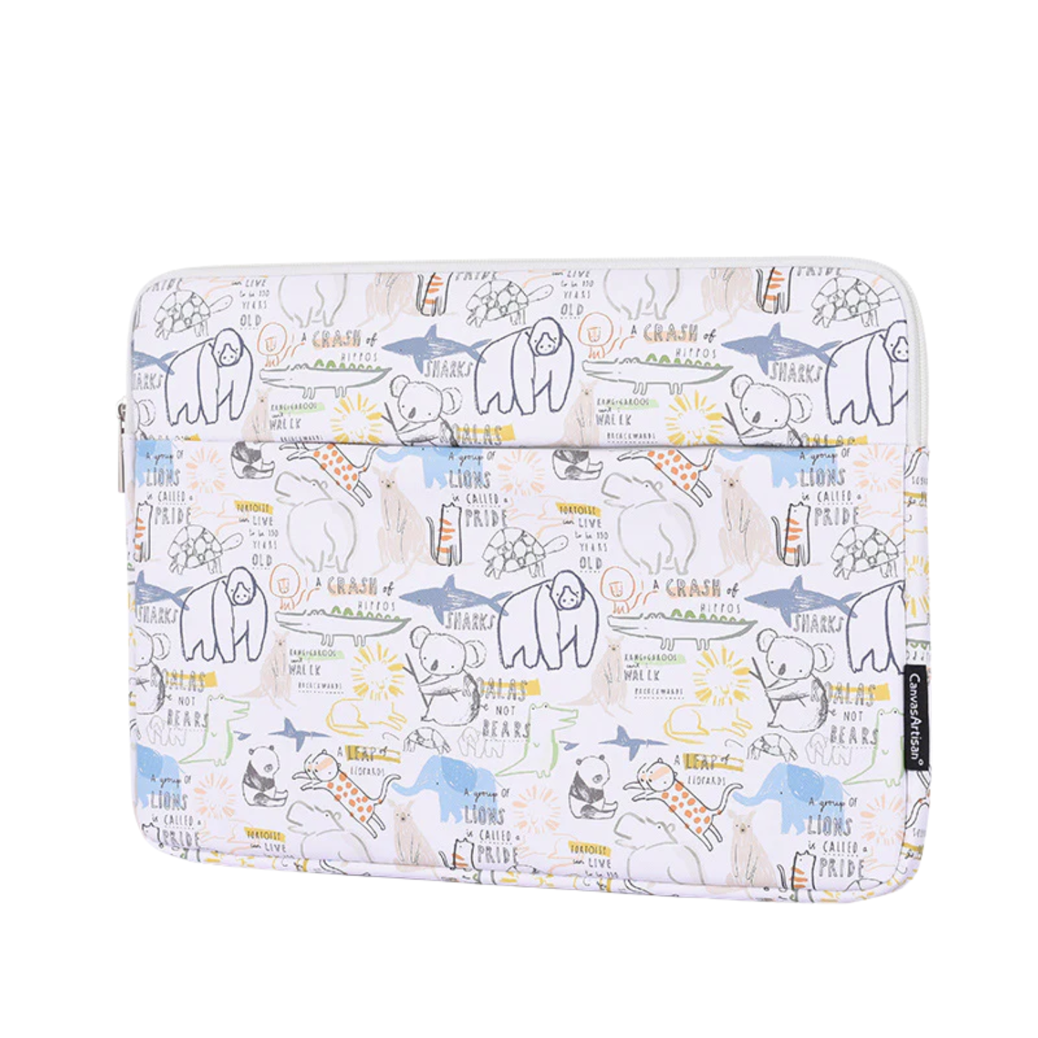 Add personality to your tech with this waterproof laptop sleeve featuring a playful Safari Cartoon Print. Designed to fit 11 to 15-inch laptops, it's compatible with popular models from Xiaomi, Huawei, RedmiBook, and more. Crafted from premium PU leather, it offers a shock-resistant and wear-resistant layer of protection, ideal for daily commutes or travel. The soft polyester lining guards your device against scratches, while the two compartments — a secure main zip pocket and a handy front slip pocket — keep your essentials organized. Its fun, animal-themed design brings a lighthearted charm to your workspace. Handpicked from Abroad, this case combines global style with practical durability. Whether you're heading to a café or campus, this laptop sleeve keeps your tech safe in standout style.