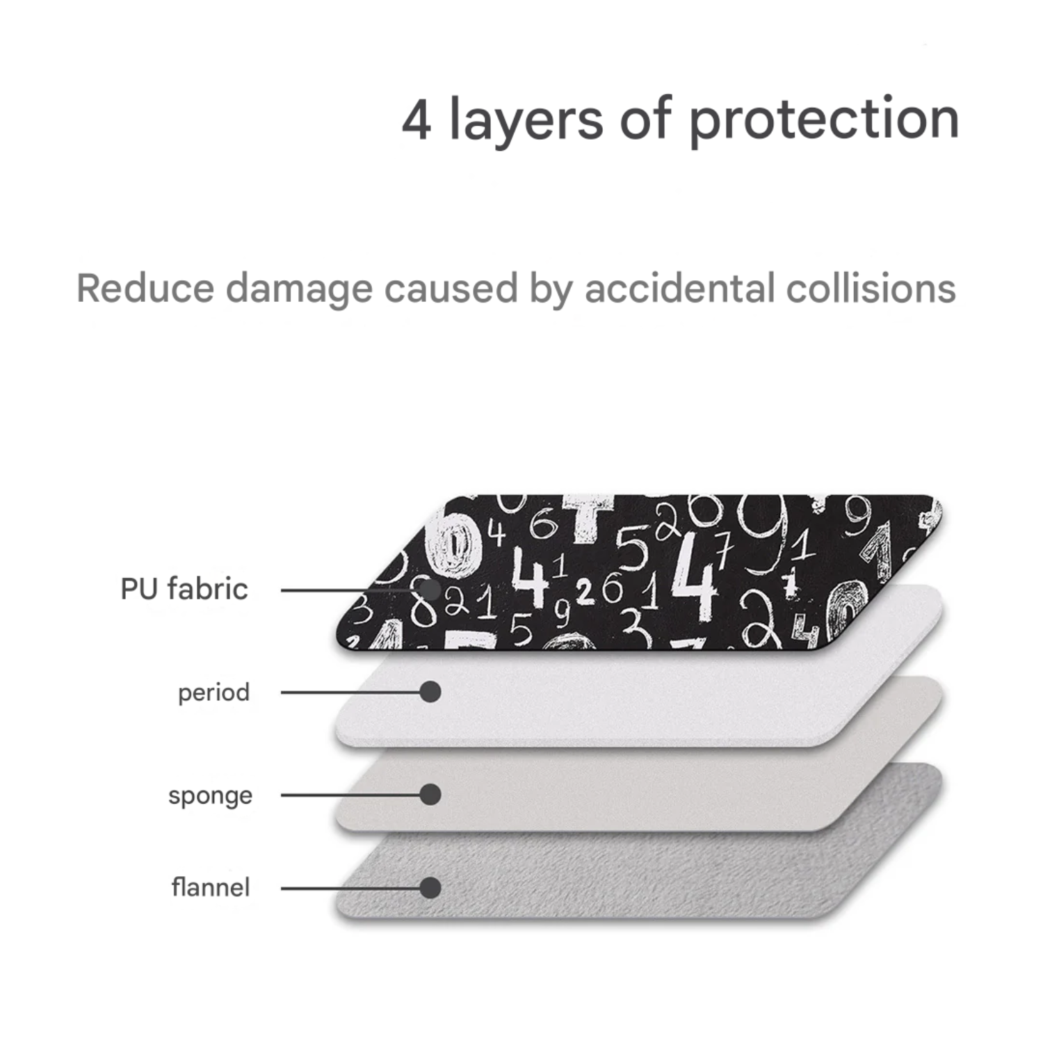 Protect your tech in style with this sleek PU leather laptop sleeve, designed to fit laptops from 11 to 15 inches. Engineered for everyday use, it’s waterproof, wear-resistant, and shock-resistant, making it ideal for commuting, travel, or school. The chalkboard number print adds a subtle, creative flair, perfect for professionals and students alike. Two compartments – a main zip and a front slip pocket – offer organized storage for your device and accessories. The soft polyester lining ensures your laptop stays scratch-free. Whether you use a Huawei, MacBook, Xiaomi, or Lenovo, this sleeve combines function with fashion for a seamless daily carry.