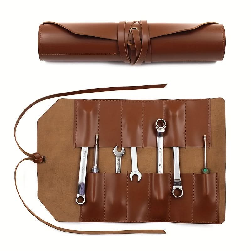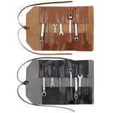 Designed with multiple compartments, this multi-functional tool roll bag neatly stores electrical tools, screwdrivers, wrenches, and more, making it an essential companion for DIY enthusiasts and professionals alike. The smooth, sleek black PU leather exterior combines practicality with style, offering a polished look that stands out.