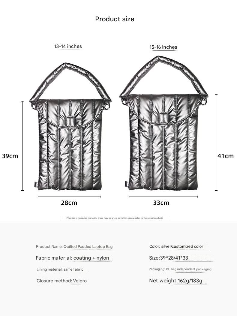 Protect your laptop in style with this Waterproof Shockproof Nylon Laptop Bag, designed for ultimate functionality and sleek aesthetics. Crafted from durable, ultra-light nylon material with a soft, quilted down finish, this bag provides excellent shock resistance to safeguard your device against daily bumps and scratches.