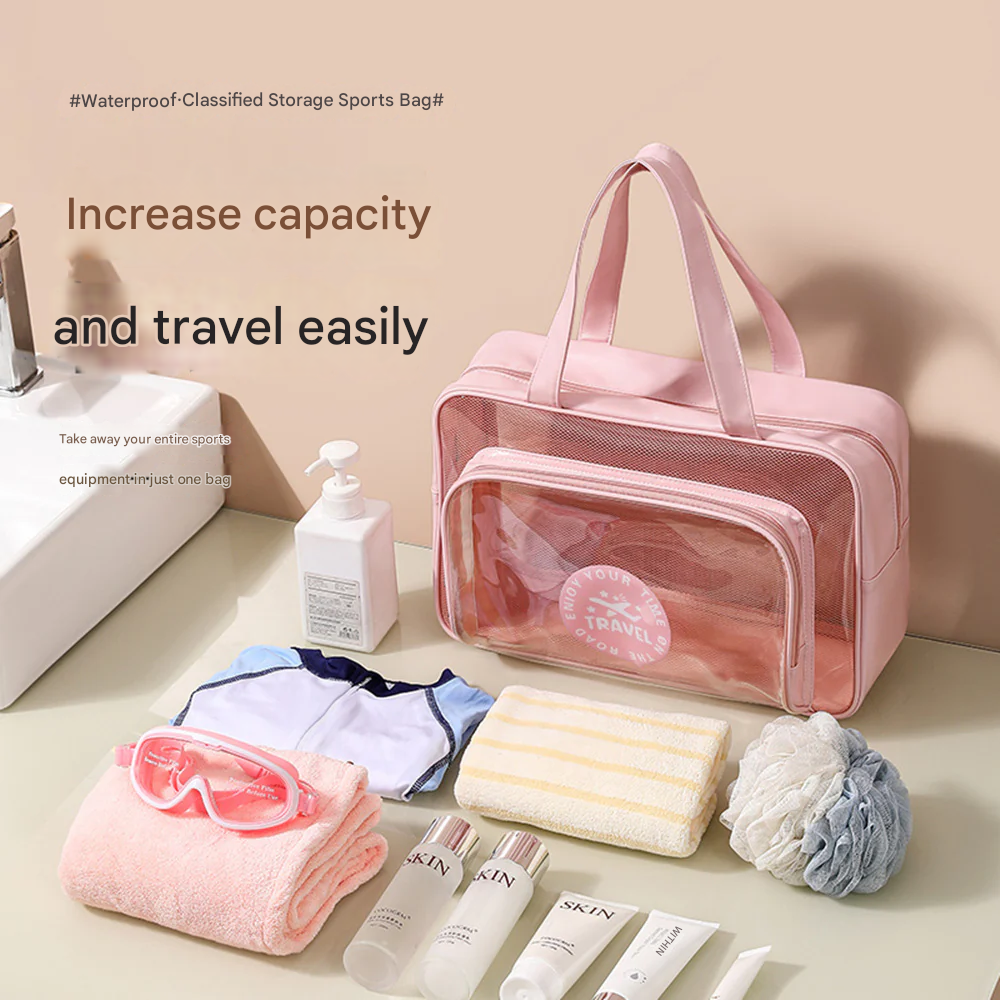 Travel light, stay organized, and keep your essentials dry with this Waterproof Toiletry Bag—a versatile storage solution for travel, gym, or daily routines. Made from durable PVC with a sleek PU finish, this bag features smart wet and dry separation compartments to protect clothes and electronics from damp items. Whether you're packing skincare, cosmetics, or workout gear, the spacious interior and water-resistant design keep everything neat and secure. Available in both small and large sizes, it’s perfect for short trips or full gym sessions. The modern, minimalist design adds a touch of sophistication to your storage game. Sourced from Worldwide Suppliers, this toiletry bag is built for function and style, wherever your day takes you.