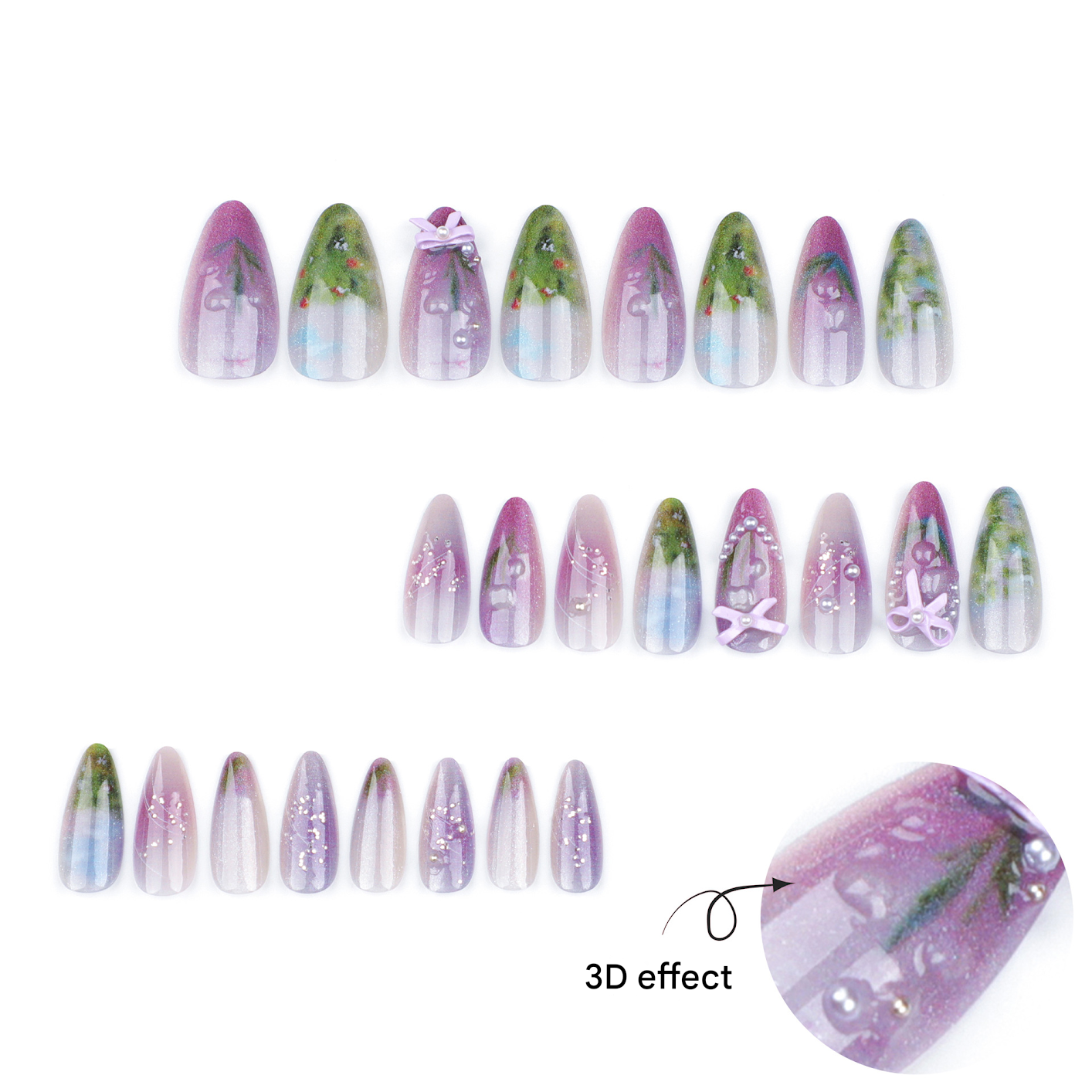 Add a touch of dreamy charm to your fingertips with these whimsical press-on nails featuring iridescent finishes, soft pastel tones, and delicate 3D details. Inspired by Monet’s artistic palette, this long almond-shaped set blends glossy lavender, green, and pink hues with abstract accents, playful bows, and elegant pearls. Each piece is uniquely designed for a handcrafted feel, perfect for creative souls who want their nails to tell a story. Made from durable acrylic and easy to apply with the included nail glue, these nails offer salon-quality results in minutes. Whether you're dressing up for an event or just want to add flair to your daily look, this set makes a statement. Sourced from Worldwide Suppliers, they bring an international touch of sweetness and sophistication to your nail game.