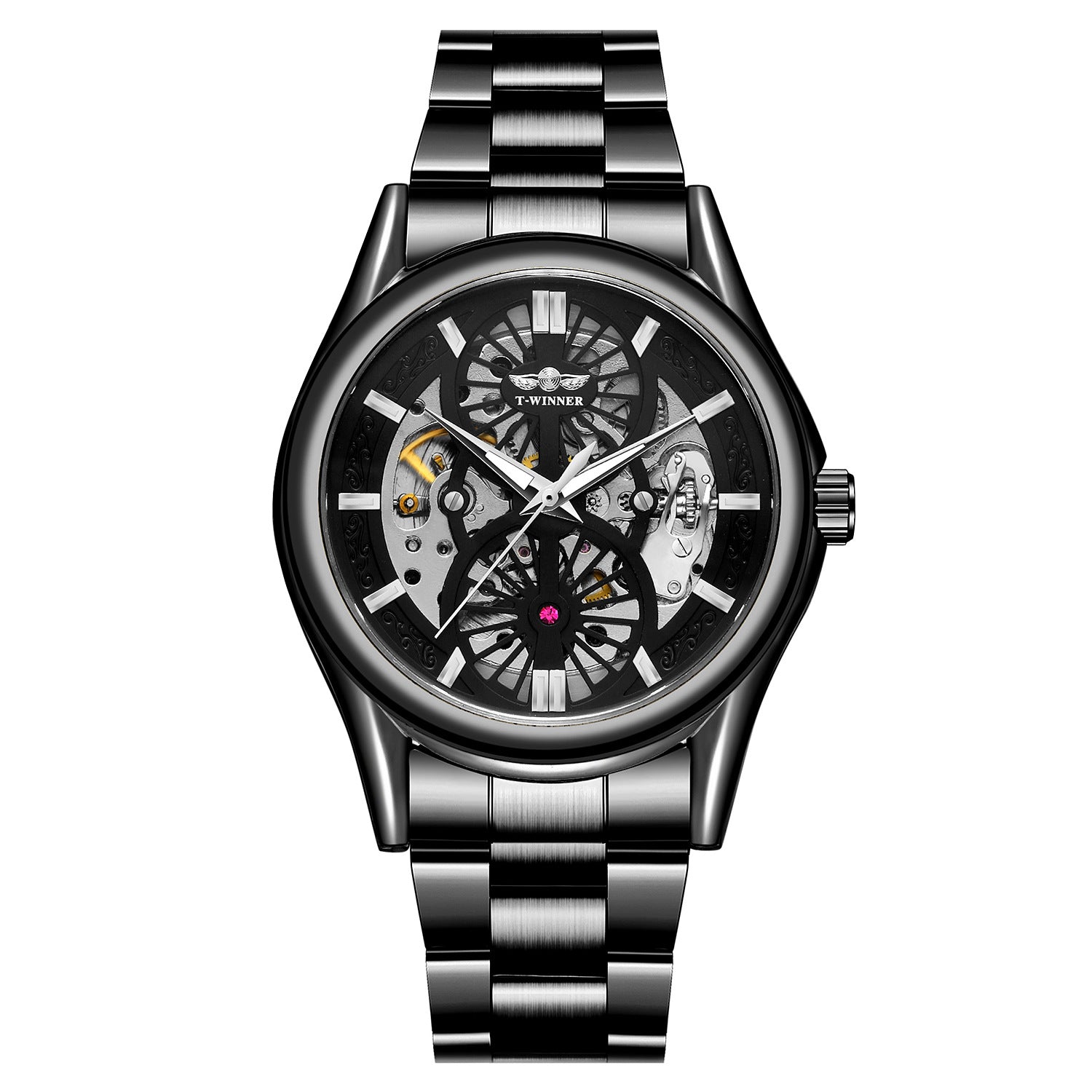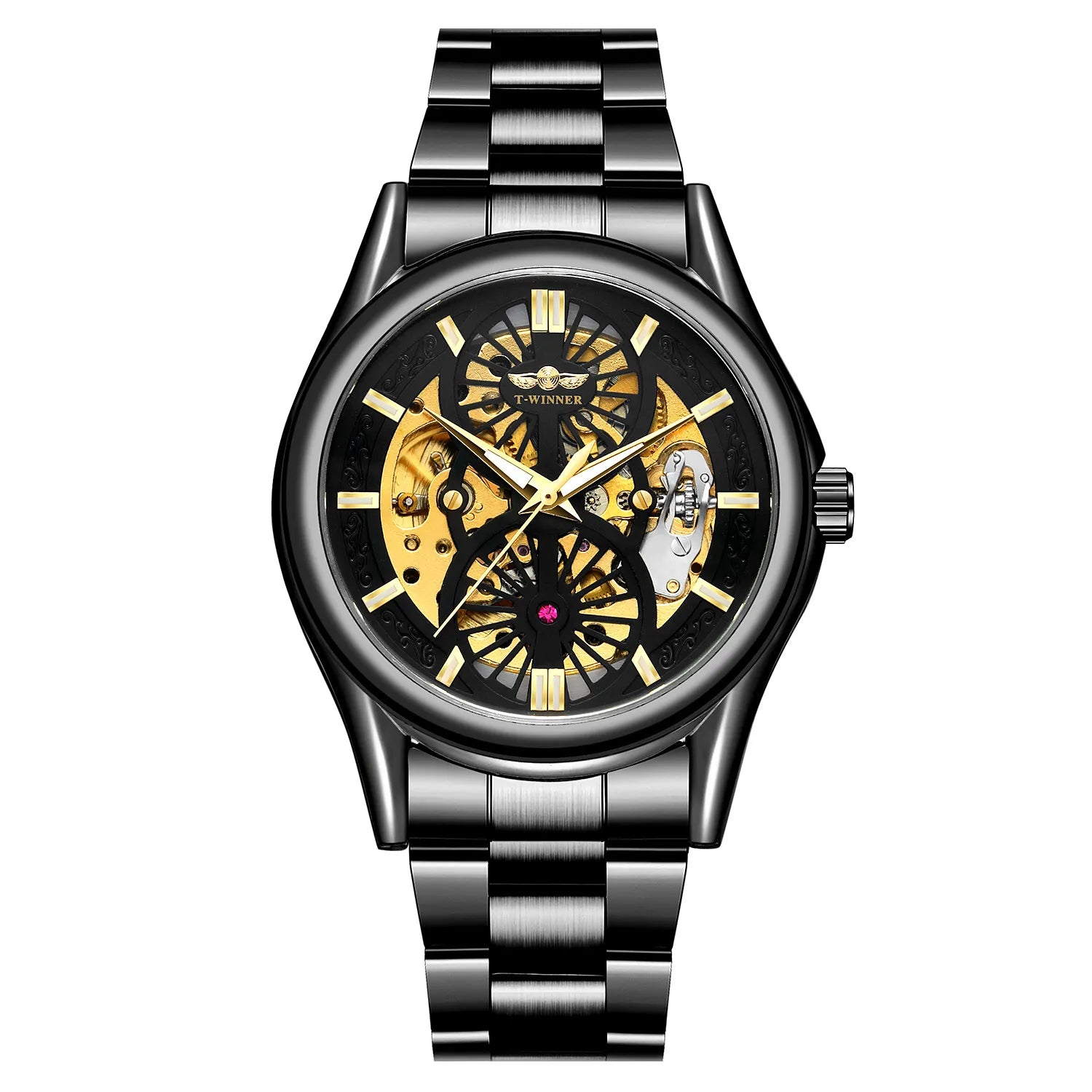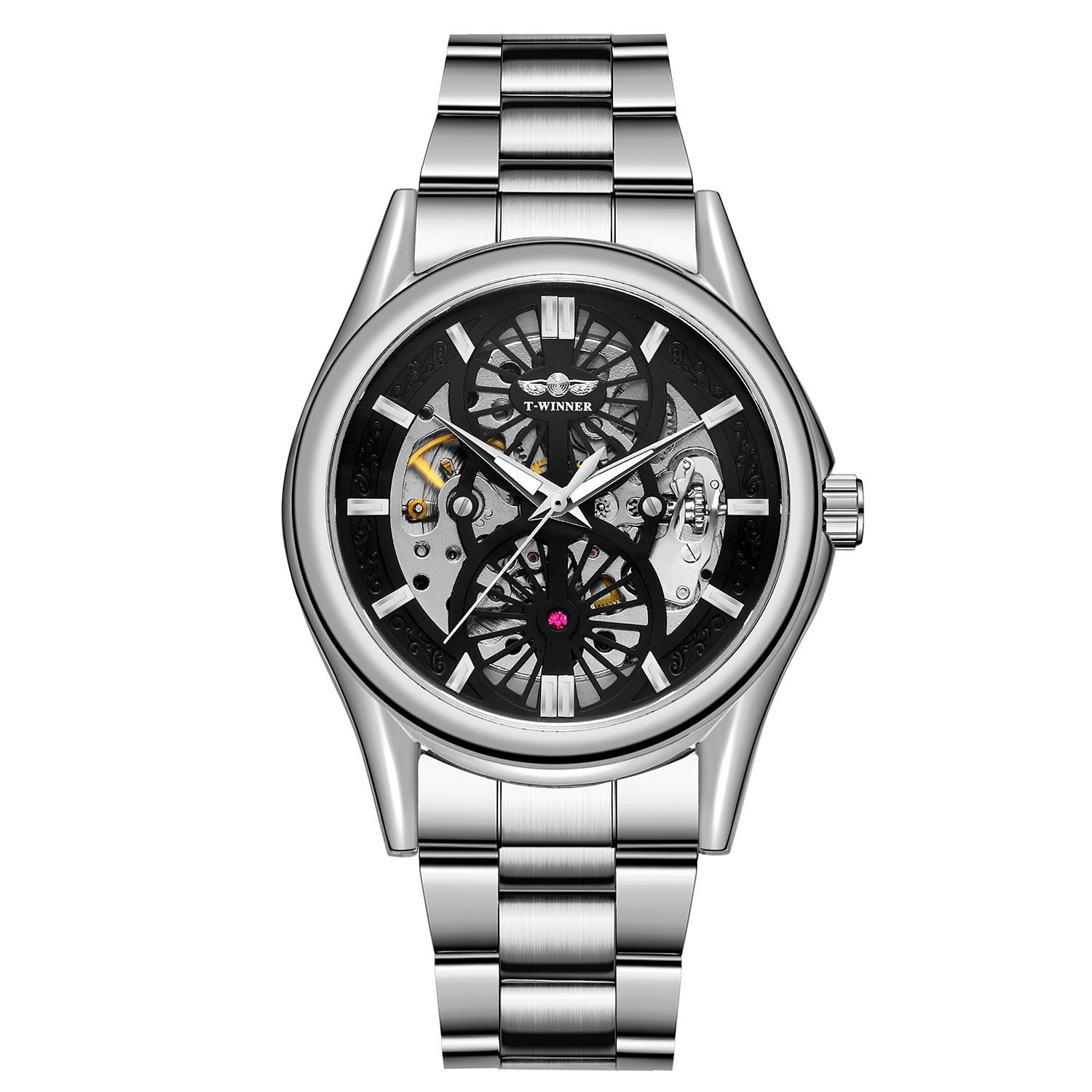 Experience luxury and precision with the Winner Skeleton Automatic Mechanical Watch, designed for men who appreciate style and craftsmanship. The 44mm round dial features a hollow design that reveals the intricate automatic mechanical movement, offering a captivating view of its inner workings. Luminous hands and backlight ensure readability in any light, while the stainless steel band with a secure folding clasp provides durability and comfort. With 3BAR water resistance, this timepiece withstands daily splashes and wear, making it perfect for both casual and formal occasions. The polished alloy case adds a sleek, sophisticated finish to the modern design. Handpicked from Abroad, this Winner watch combines high-quality materials with precision engineering, making it a standout accessory that exudes elegance, functionality, and timeless appeal.