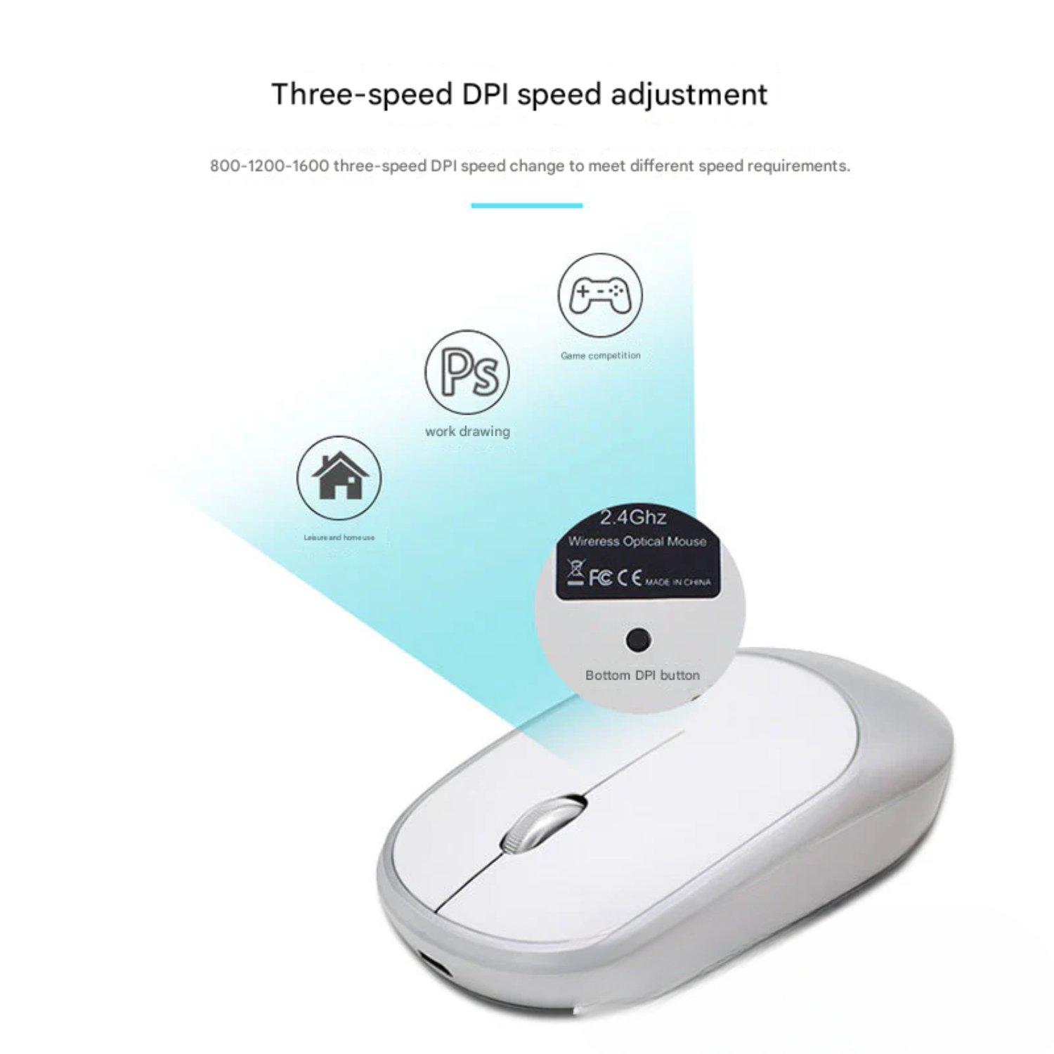 Streamline your workspace with the sleek and efficient Wireless Charging Silent Mouse, designed for both comfort and quiet operation. With 2.4G wireless connectivity and a smooth 1600 DPI optical sensor, this mouse delivers precise, lag-free performance—ideal for desktops, laptops, and office setups.