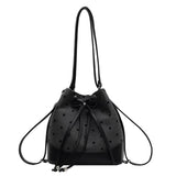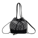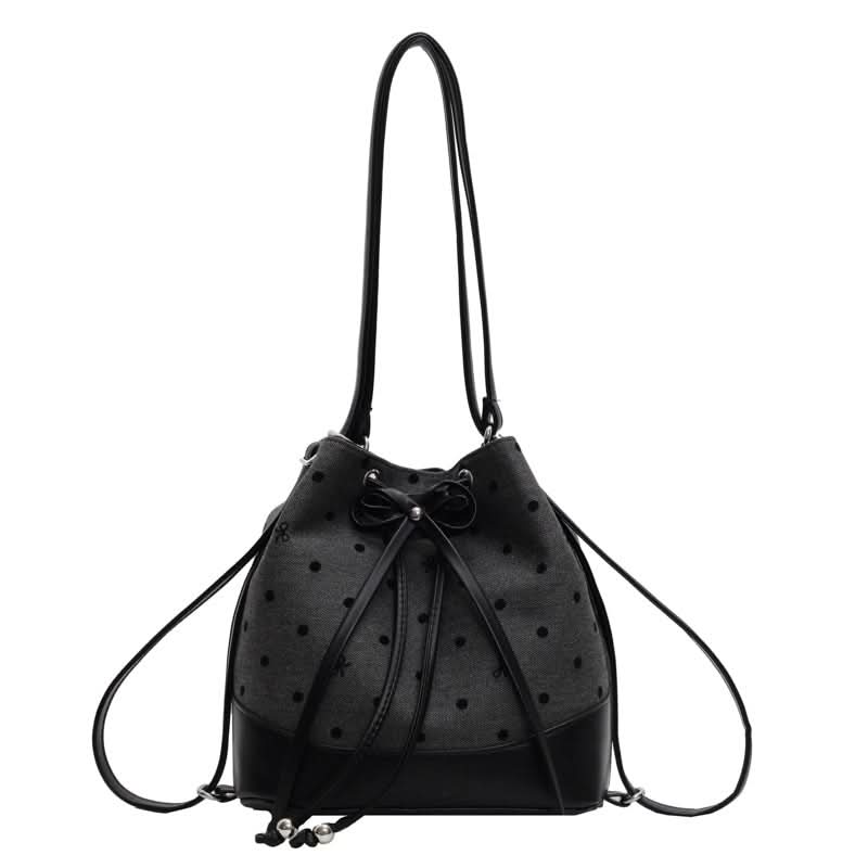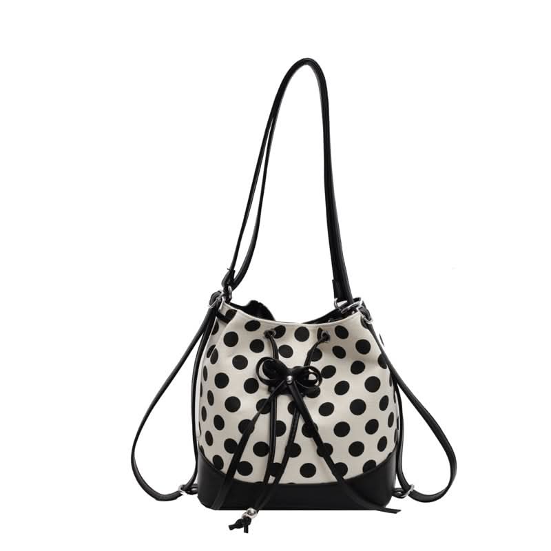 Effortlessly blend style and function with this versatile canvas polka dot bucket bag, perfect for daily commutes, casual outings, and weekend adventures. Crafted from durable canvas with a soft polyester lining, this bag offers a lightweight yet sturdy design that complements any wardrobe.