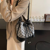 Available in dark brown, off-white, and gray, this trendy polka dot bag adds a playful touch to your everyday style. Whether you're heading to work, running errands, or meeting friends, this chic and functional bag is a must-have accessory.