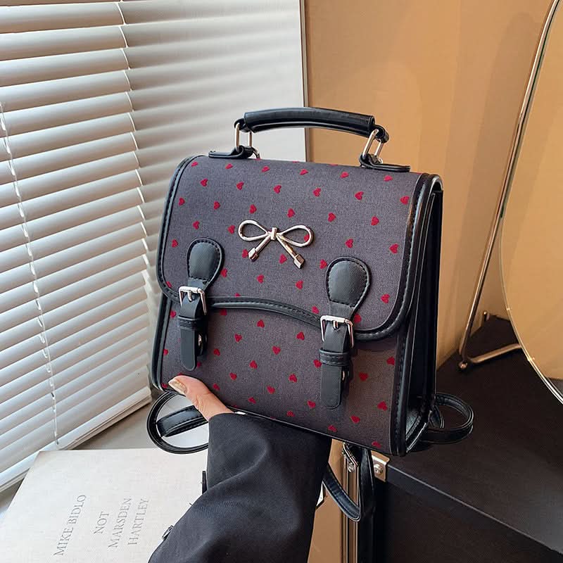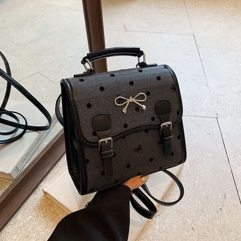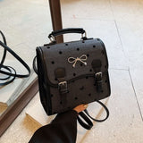 Add a touch of charm to your daily look with this polka dot bow mini backpack, designed for women who love chic, college-inspired fashion. Made from premium PU leather, this small yet spacious backpack combines style and practicality, making it perfect for daily wear.